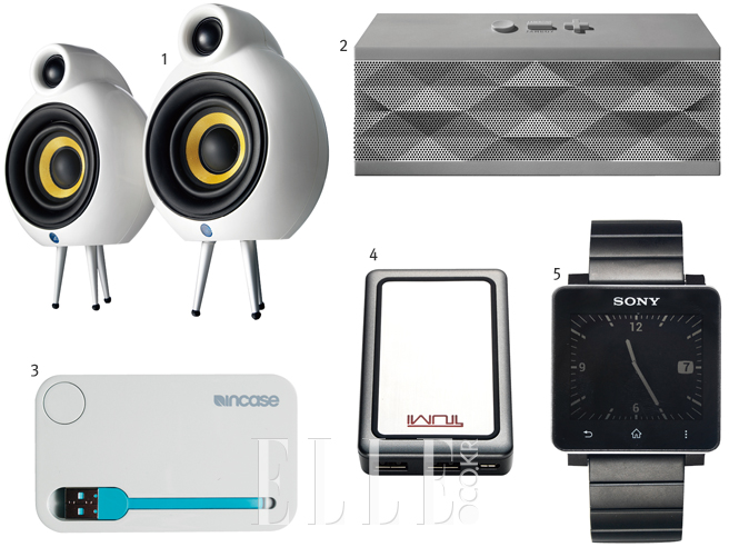 1 MICROPOD BT ‘스피커는 왜 네모날까?’라는 질문에서 출발한 미니포드가 한 단계 더 진화했다. 블루투스 기능이 있어 PC나 스마트폰과 연동이 가능하고, 추가 부품을 구입하면 벽에 설치할 수 있다. 18만원, 스칸디나 by 소비코AV.