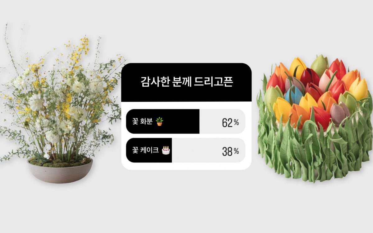 <엘르 데코> 인스타그램 팔로워에게 물었습니다. 62%가 꽃 화분에, 38%가 꽃 케이크에 투표했네요.