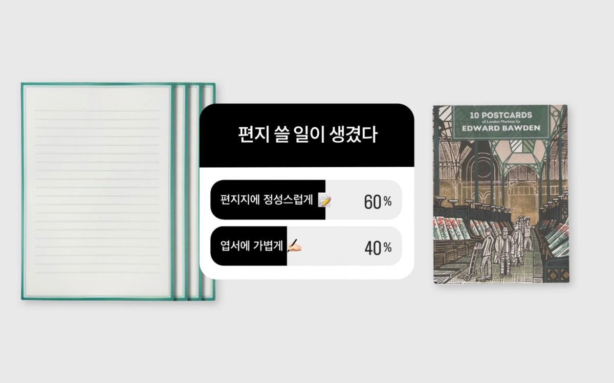 <엘르 데코> 인스타그램 팔로워에게 물었습니다. 60%가 편지지에, 40%가 엽서에 투표했네요.