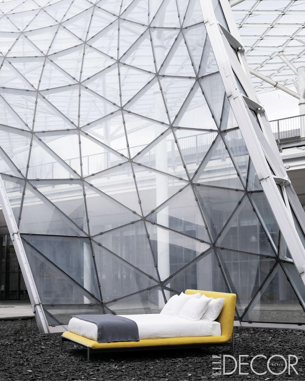 BEDDING Esosoft Bed by Antonio Citterio for Cassina 안토니오 치테리오가 디자인한 연속적인 선들. 소파와 벤치, 발판, 커피 테이블로 구성된 카시나의 에스프레소 컬렉션은 나사로 고정된 부품들이 정밀하게 설계된 알루미늄 구조라 쉽게 해체하거나 재사용이 가능하다. 가벼운 베이스는 재활용 소재로 만든 흡음 패널과 침대 프레임이 포함된 헤드보드가 적용됐다. 부드러운 프로필 덮개는 침대의 부드러운 곡선을 강조한다. cassina.com