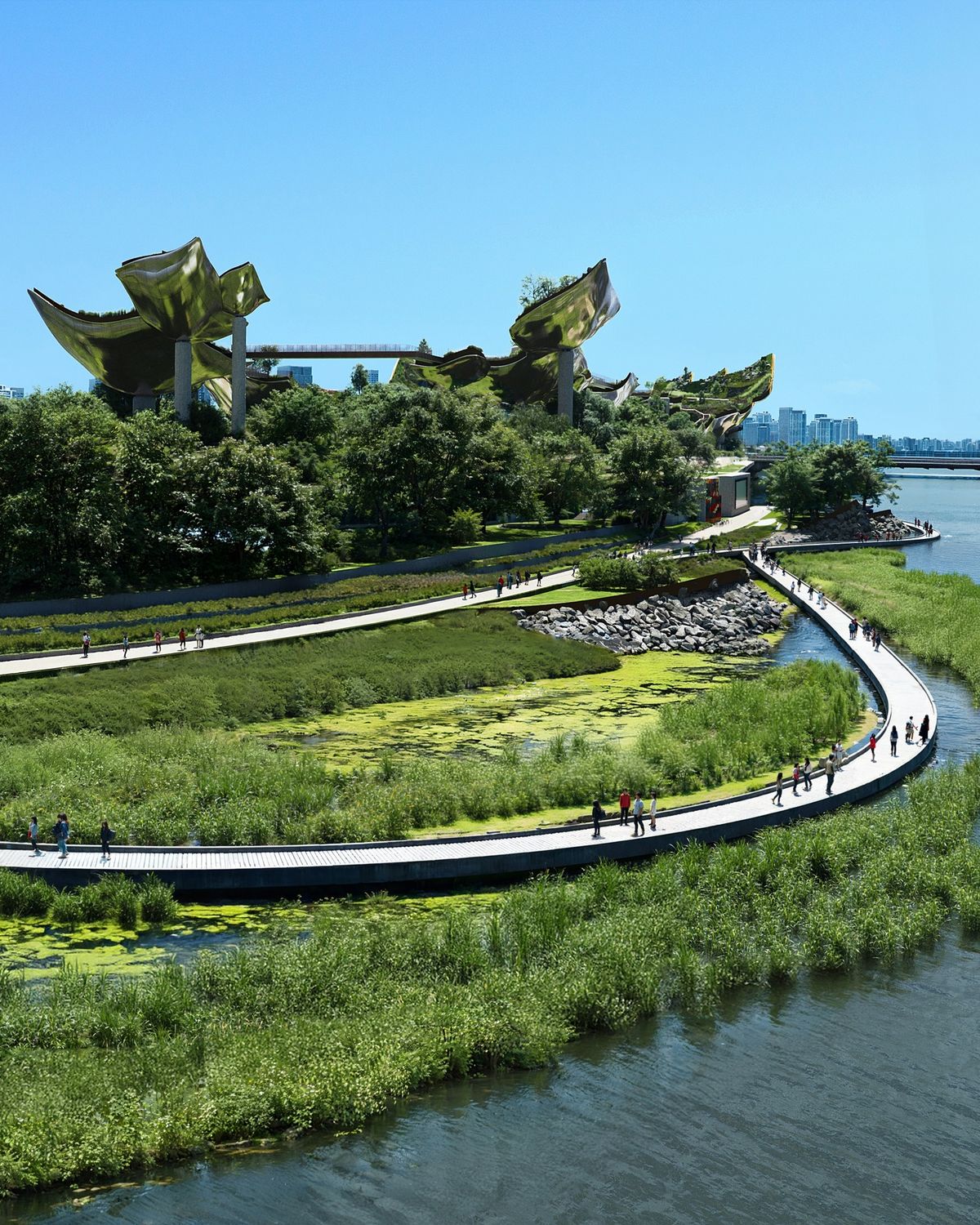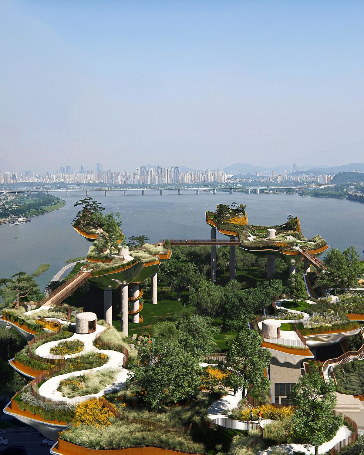올해 진행된 '노들 글로벌 예술섬 국제지명설계공모'에서 토마스 헤더윅의 작품 <소리풍경(Soundscape)>이 당선됐습니다. 그가 제안한 디자인은 노들섬의 장소성을 최대한 보존하면서도 아름다운 녹색의 공중 산책로를 연출해 높은 점수를 받았다고 해요. 이를 기반으로 내년 2월부터 노들섬 공사가 이뤄질 예정입니다.