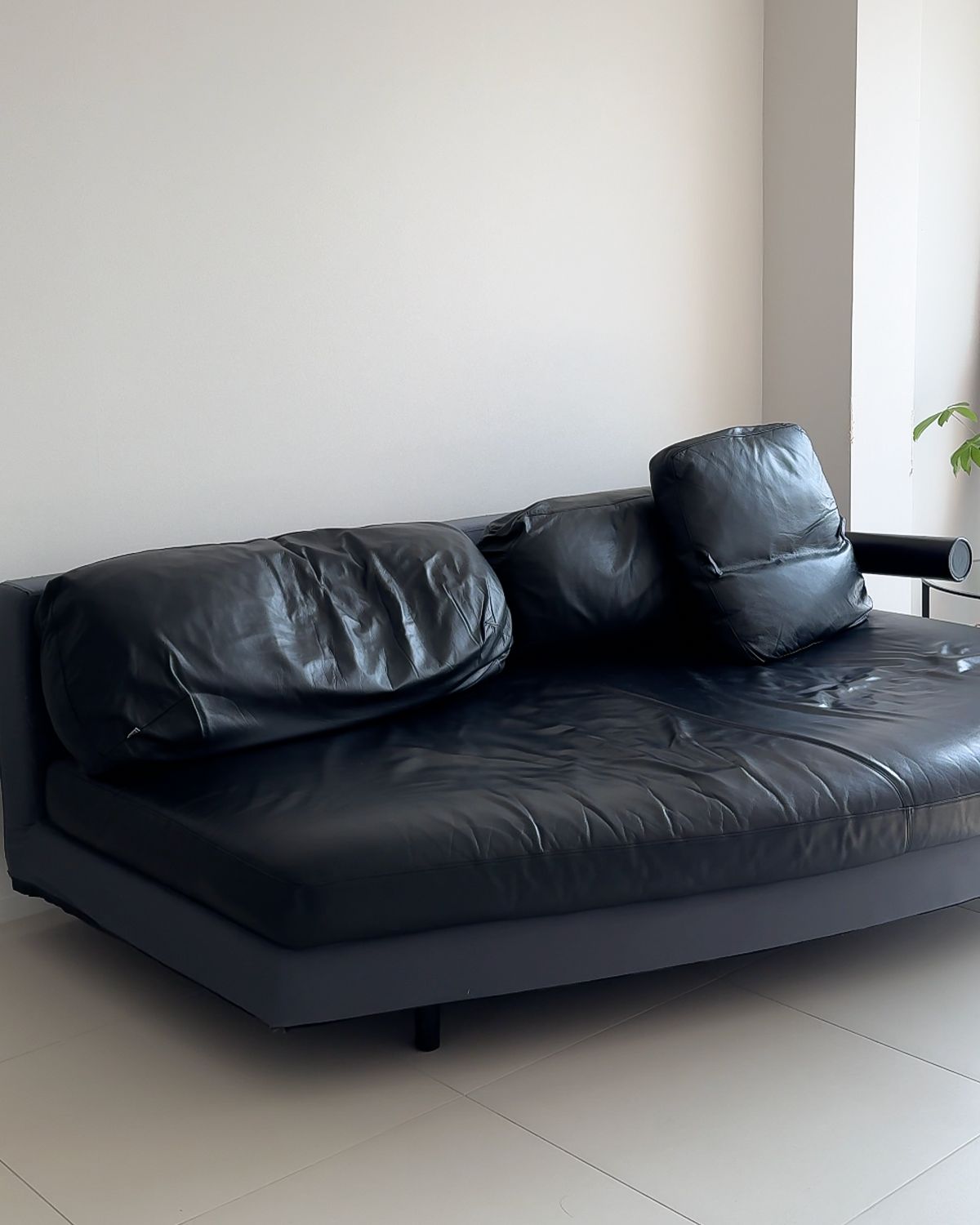 안토니오 치테리오가 브랜드 비앤비 이탈리아를 위해 만든 널찍한 베이시티 소파는 선아와 남편이 모두 사랑하는 가구입니다. 시그니처 라운드 팔걸이와 조약돌 같은 디자인이 거실의 중심을 잡아주네요. 신혼 가구를 보러 다니던 둘의 의견이 동시에 통했던 제품이라고.