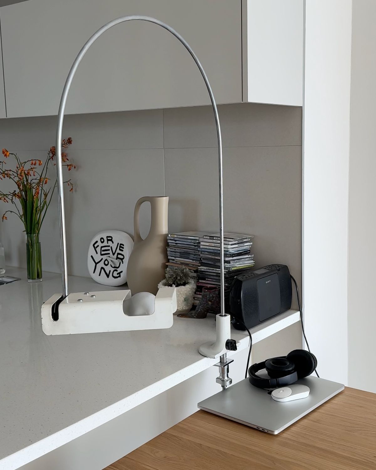 영화 '센과 치히로의 행방불명'에 나오는 콩콩이 가로등처럼, 선아의 집을 장난스럽게 밝혀주는 전등이 있습니다. 바로 올루체의 스파이더 램프인데요. 전구를 살랑살랑 흔들며 부엌과 식탁을 밝혀주는 유려한 곡선의 램프, 꽤 탐나네요.