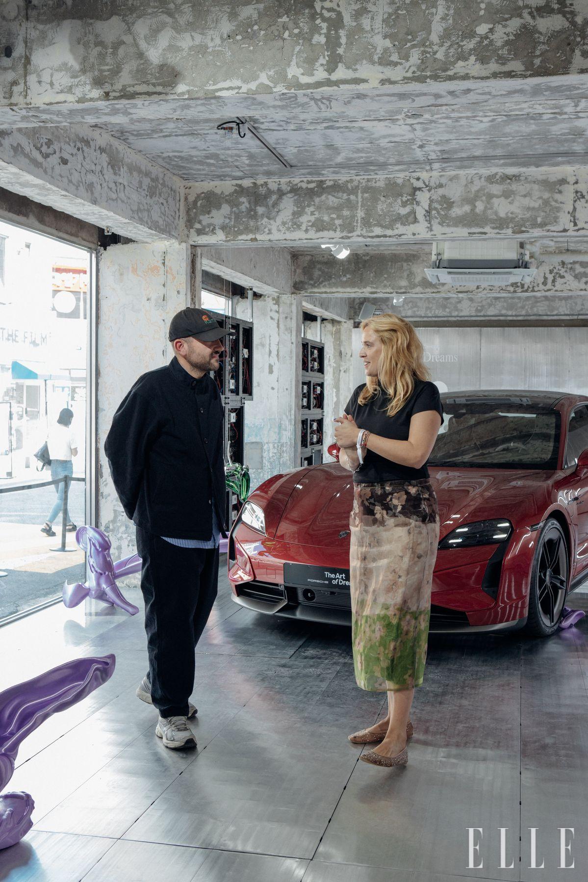 곧장 미래로 뛰어들 수 있는 공간이었습니다. 포르쉐 타이칸 터보 K-에디션과 오드리 라지(Audrey Large)의 3D 프린트 아트피스가 나이스워크샵의 공간과 어우러져 초현실적인 장면이 연출됐죠. 아이디어 구현을 마치고 다른 작품들과 함께 어울려 완성된 공간을 보니 어땠나요
