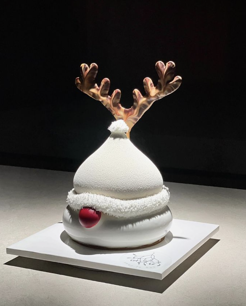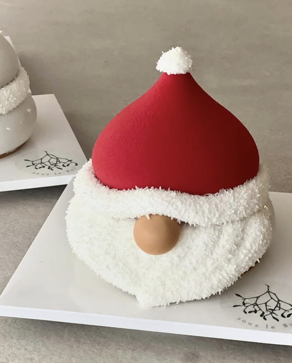 매년 산타클로스와 루돌프 얼굴 모양 케이크로 시선을 사로잡는 한남동 디저트 카페 ‘수르기’. 올 연말에도 같은 모양의 케이크를 선보인다. 테두리에 하얀 털이 달린 빨간 모자를 푹 눌러 써 코와 흰 수염만 보이는 산타클로스의 얼굴을 형상화한 ‘산타클로스’는 두 가지 종류의 초콜릿과 헤이즐넛을 조합한 무스 타입의 케이크다. 참고로 보슬보슬한 털의 촉감을 그대로 재현한 모자 테두리와 수염의 재료는 마시멜로다. 크기는 다소 작으나, 맛의 레이어가 상당하고 밀도 있어 막상 먹어보면 적다는 생각이 들지 않는다. 산타클로스와 같은 형태에, 모자는 하얀색이며 코는 붉고, 뒤편에는 멋들어진 뿔이 달린 ‘루돌프’는 홍차와 밀크초콜릿을 조합한 무스 타입의 케이크다. 산타클로스가 초콜릿 맛이 지배적인 동시에 견과류의 고소한 풍미가 강렬하다면, 루돌프는 밀크티처럼 부드럽고 향긋하다. 디저트답게 달고 강렬한 인상을 남기는 케이크를 찾는다면 산타클로스를, 은은한 단맛으로 부담 없이 먹을 수 있는 케이크를 원한다면 루돌프를 추천한다. 예약은 스마트스토어를 통해 6일부터 받을 예정.
