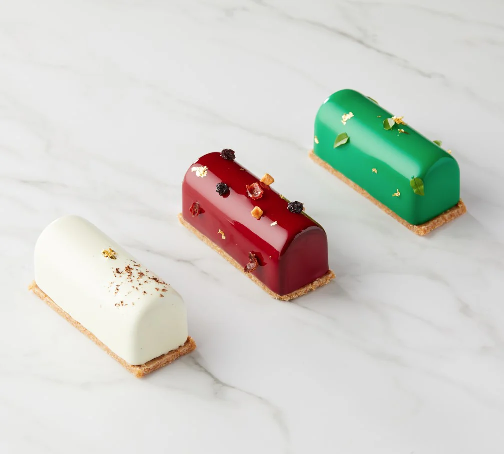 포시즌스 호텔의 ‘컨펙션즈 바이 포시즌스’ 케이크는 한마디로 '돈 값' 한다. 일반 베이커리에서 케이크를 살 때보다 약간의 금액을 더 내야 하지만, 시각과 미각 두 가지 측면 모두를 만족시킨다. 왜, 괜히 SNS에서 보고 반해서 디자인 케이크를 주문했다가 기대에 미치지 못하는 디테일과 맛에 실망한 적 있지 않은가. 안정적으로 케이크를 공수할 수 있다는 점도 장점이다. 현재 12월 거의 모든 날짜와 시간대에 케이크 예약이 가능하다. 올해는 두 가지 홀리데이 케이크를 준비했다. 하나는 초록과 빨강의 대비가 눈길을 사로잡는 ‘크림슨 노엘’. 초콜릿으로 만든 리본을 부수면, 레드 글레이즈 속에 숨겨져 있던 리스 모양의 파운드케이크가 모습을 드러낸다. 깊은 풍미의 파운드케이크에 다크 럼 가나슈가 어우러져 입안이 감미롭다. 와우 포인트가 있는 비주얼에 해체하는 재미가 있으면서 크림이 많지 않고 담백한 파운드케이크류를 선호하는 이에게 완벽한 선택이 될 것이다. 한편, 보는 순간 마음이 녹아내릴 것처럼 감성적인 비주얼의 ‘윈터 원더랜드’는 눈을 연상시키는 미색의 케이크에 화이트초콜릿으로 만든 흰색의 오너먼트와 편지, 골든벨 장식이 올려져 있다. 피칸 다쿠아즈, 메이플 시럽에 부드러우면서도 산뜻한 배 무스를 올려 풍미가 풍성하면서도 뒷맛이 깔끔한 것이 특징이다.