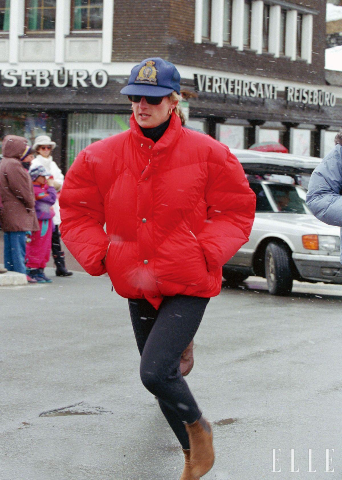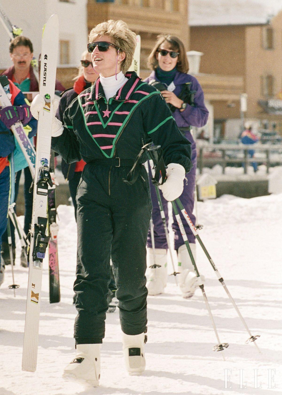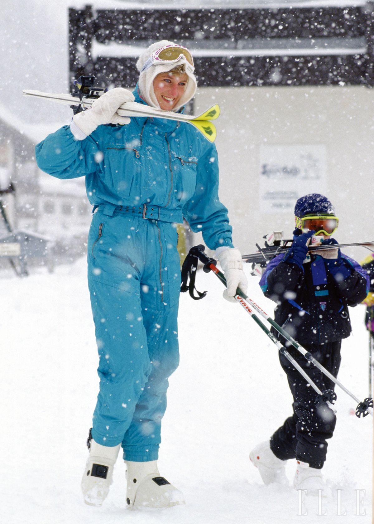 1990년대의 레트로 스키웨어에 비비드한 색감이 빠질 수 없다. 다이애나는 터키색을 골랐다.