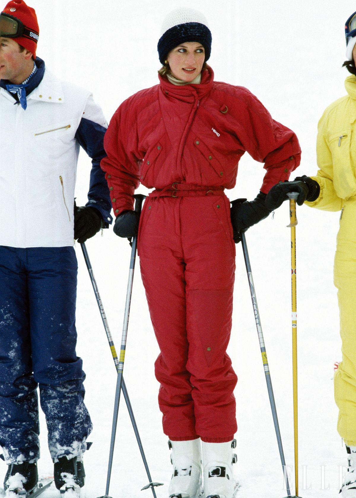스트라이프와 별 무늬를 포인트로 한 다이애나의 스키 수트.