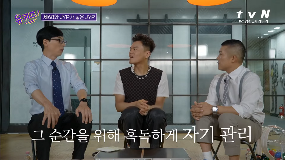 그런가 하면 철저한 자기관리로 꾸준히 같은 모습을 유지하는 스타들이 많죠. 자기 관리 루틴 분야의 끝판왕으로 항상 지목되는 인물은 JYP 엔터테인먼트의 수장 박진영입니다. MBTI가 윤시윤과 같은 ENFJ라는 박진영은 20시간 금식을 하는 날이 일주일에 반 이상이며, 1일 1식을 30년 넘게 지켜오고 있어요. 그 때문인지 20대 때 사진과 현재를 비교해도 거의 차이를 찾아볼 수 없을 정도죠. 하지만 박진영이 이 같은 계획적 루틴을 유지하는 건 천성이 아닌 엄청난 노력입니다. 사실 그는 하루에 가장 많이 하는 말이 ‘죽겠다’와 ‘배고파’일 정도로 엄격한 자기 통제, 인내의 달인이거든요. 이런 관리의 원동력은 춤에 대한 열정이었고요. 그는 “60살까지는 매년 춤과 노래가 늘 것이다. 지금 몸 상태는 순발력, 지구력, 유연성 모두 최상이다, 20대 때보다 훨씬 춤을 잘 추고 있다"라고 말할 정도로 여전히 성장에 매진하고 있습니다.