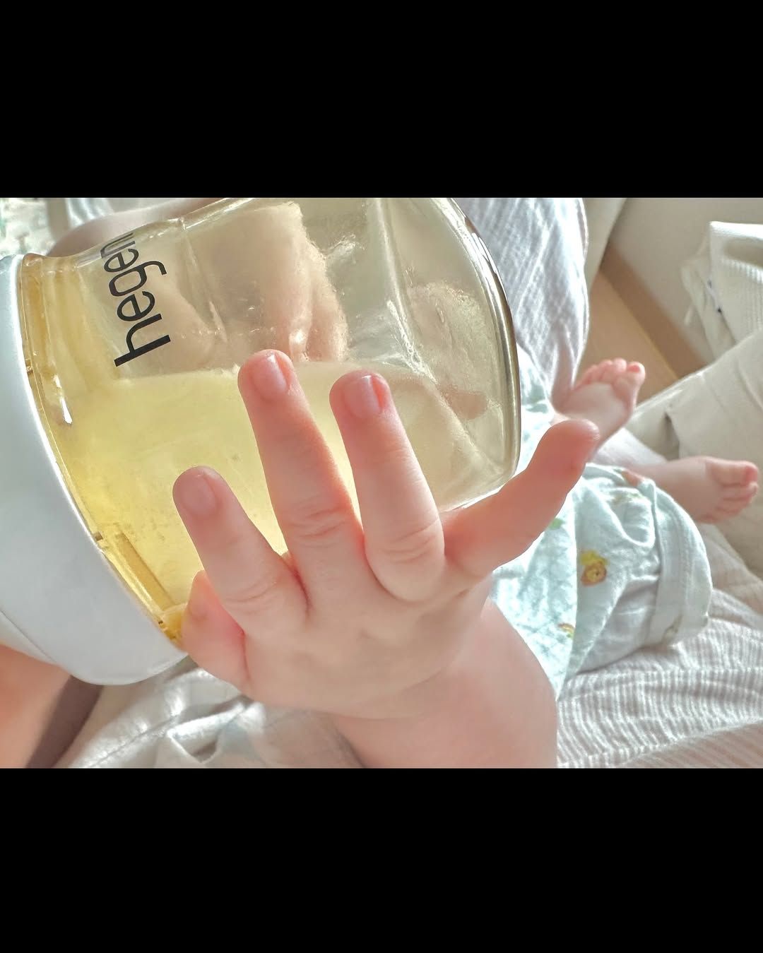 나혜미가 공유한 사진은 손을 꼭 잡고 있는 첫째와 둘째 모습으로 시작하는데요. "귀여운 거 귀여운 거 또 귀여운 거"라는 나혜미의 아들 바보 코멘트가 웃음을 주는군요. 이어진 사진에는 아기 침대에 누운 채 잠을 자고 있는 둘째 아들의 얼굴이 반쯤 보이는데, 벌써부터 풍성한 머리숱이 눈에 띕니다. 생후 3개월 치곤 길쭉하고 큰 손도 그렇고요.