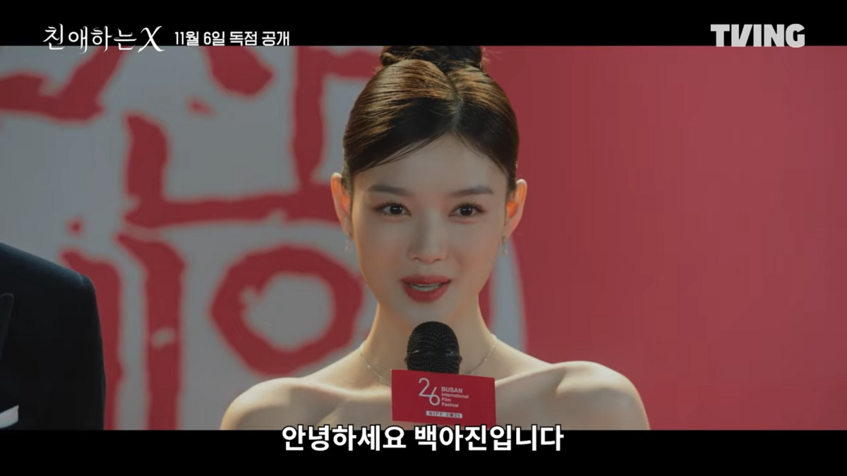 <친애하는 X>는 오는 11월 6일 티빙에서 만나볼 수 있습니다. 이에 앞서 화기애애한 분위기가 느껴지는 단체사진도 공개됐어요. 김유정은 최근 제30회 부산국제영화제에 참석 후 관련 사진을 SNS에 여러 장 공유했습니다. 사진에는 김영대, 김도훈 등 <친애하는 X>팀과 함께 찍은 모습도 있어 눈길을 끌고 있죠. 최근 열애설이 제기된 김도훈과의 투샷도 있었는데요. 두 사람은 커플룩을 연상하게 하는 스타일링을 한 채 포즈를 취해 더욱 시선을 사로잡았습니다.