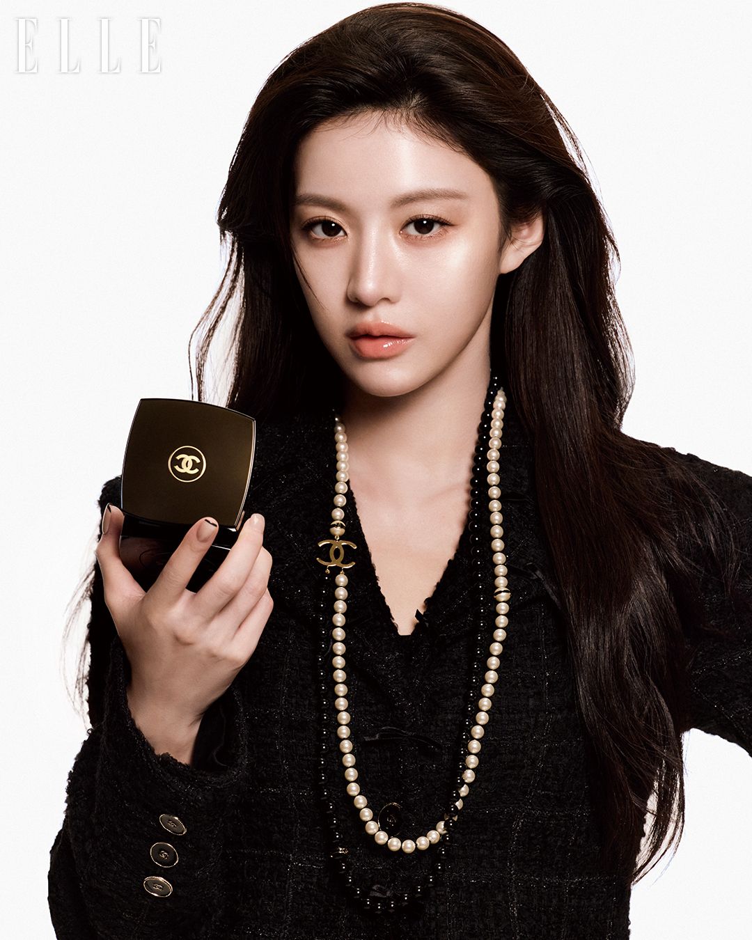 특별히 감탄을 자아내는 고윤정의 피부는 샤넬의 수블리마지 쿠션으로 완성한 것. 수블리마지 스킨케어 성분에 파운데이션의 커버 효과를 더한 이 프리미엄 쿠션은 단 한 번의 터치만으로 피부에 본연의 광채와 찬란한 빛을 더해준다. 그녀의 피부는 마치 스스로 빛을 발하는 듯 어떤 순간에도 한결같이 매끈하고 생기로 가득해 촬영장에 있는 이들의 감탄을 불러 일으켰단 후문. 샤넬 최초의 프리미엄 립 오일, 수블리마지 렉스트레 립 오일로 연출한 입술도 모든 이들의 시선을 머물게 하기에 충분했다. 입술 라인에 ‘착’하고 맞닿는 골드 메탈 애플리케이터를 사용해 바르는 모습은 그 자체로 하나의 우아한 제스처로 느껴졌다. 특별히 수블리마지 쿠션과 수블리마지 렉스트레 립 오일은 샤넬 하우스 르사주 공방에서 제작한 골드 트위드 파우치에 담아 소장가치를 높였다.