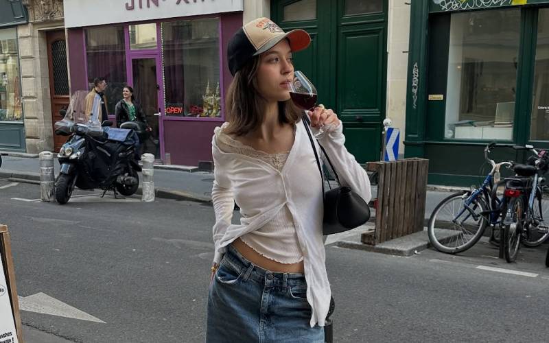 제니의 시그니처 룩으로 자리 잡은 ‘청바지 + 블랙 재킷’ 조합이 이번 시즌 새롭게 업데이트됐어요. 클래식한 디자인의 크롭 재킷에 귀여운 베레모를 더해 프렌치 감성을 한층 강조했죠. 청바지에 네크라인이 독특한 블라우스를 매치해 별다른 액세서리 없이도 세련된 클래식 룩을 완성했습니다.