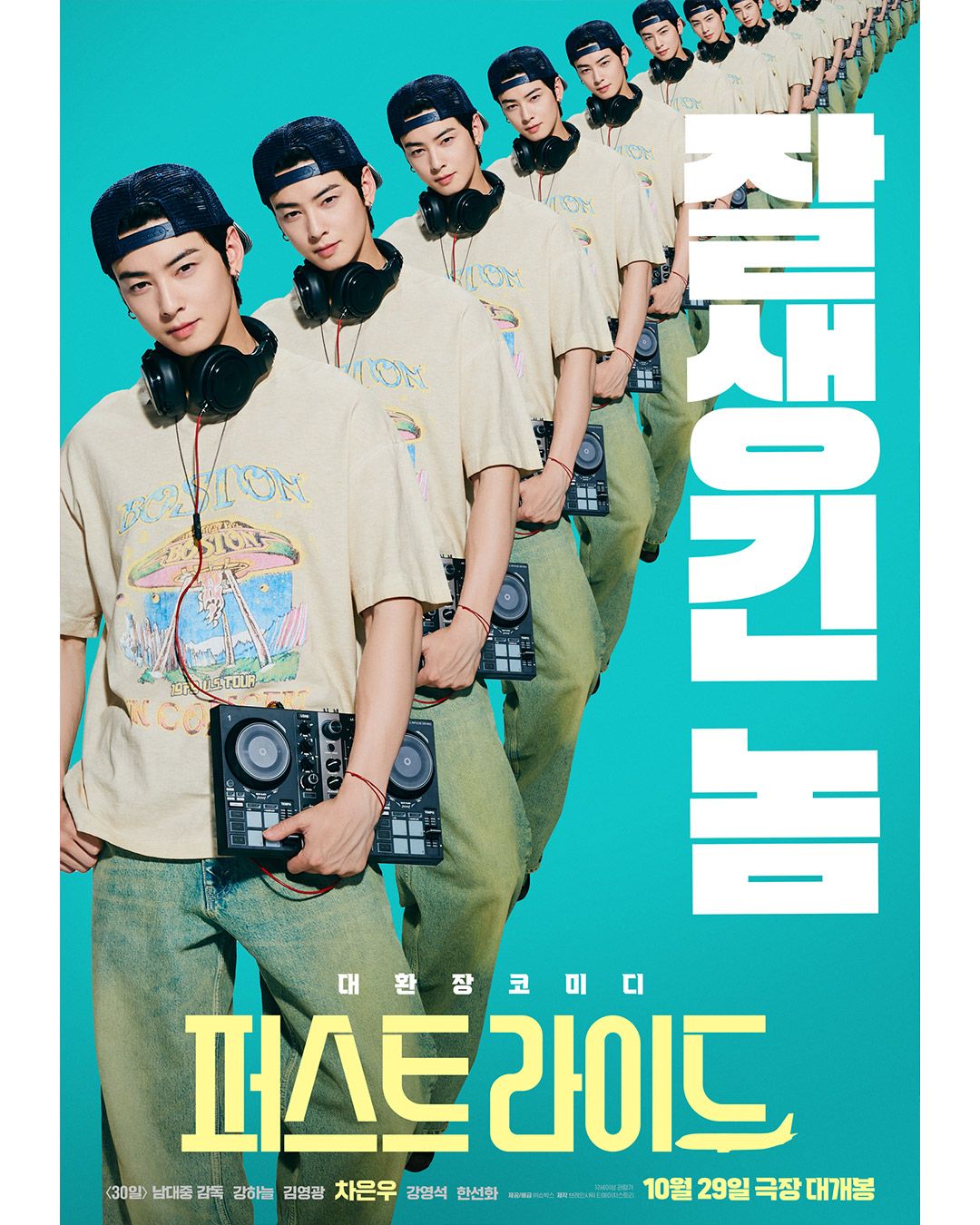 29일 개봉을 앞둔 <퍼스트 라이드>는 제목 그대로 ‘첫 시도’이자 ‘첫 폭주’를 예고하는 작품. 영화는 어린시절부터 한 몸처럼 붙어 다닌 24년 지기 사총사가 학창 시절 이루지 못했던 꿈을 위해 생애 첫 해외여행을 떠나며 벌어지는 환장의 세계를 따라갑니다. 차은우는 비록 오늘은 방구석이지만, 내일의 월드 뮤직 페스티벌 DJ를 꿈꾸는 인물 ‘연민’역을 맡아 완벽하게 관리된 이미지와는 정반대의 매력을 선보일 예정이죠. 언제나 반듯하고 단정할 것만 같은 ‘차도남’ 얼굴로 연기하는 허세와 허당미 가득한 좌충우돌 청춘은 어떤 모습일지 개봉 전부터 화제를 모읍니다. 특히 그와 함께 사총사로 등장하는 배우 강하늘과 김영광, 강영석이 극 전반을 믿음직스럽게 이끌고, 이제는 코믹 감초 연기의 대가라고 할 수 있는 한선화도 힘을 보탰기에 코미디 장르를 기다려온 이들에게는 즐거운 기다림이 아닐 수가 없습니다.