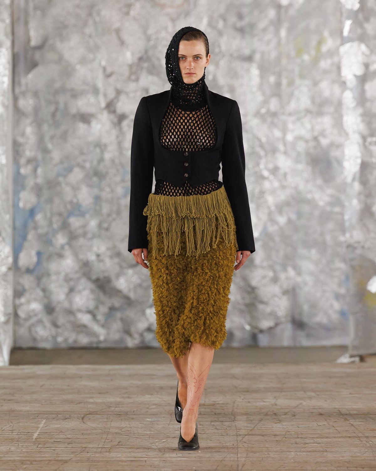 런던 패션위크에서 첫 런웨이를 선보인 오스카 우양은 베이징 출신으로 현재 런던을 기반으로 활동 중이에요. 센트럴 세인트 마틴을 졸업한 그는 실험적인 니트워크와 구조적인 실루엣으로 주목받고 있죠. 이번 데뷔 컬렉션의 타이틀은 ‘Don’t Shoot the Messenger’. 전통적인 포크로어와 미래적인 니트 기술을 결합해, 메시지를 전달하는 ‘전달자’의 역할을 패션으로 표현했습니다.