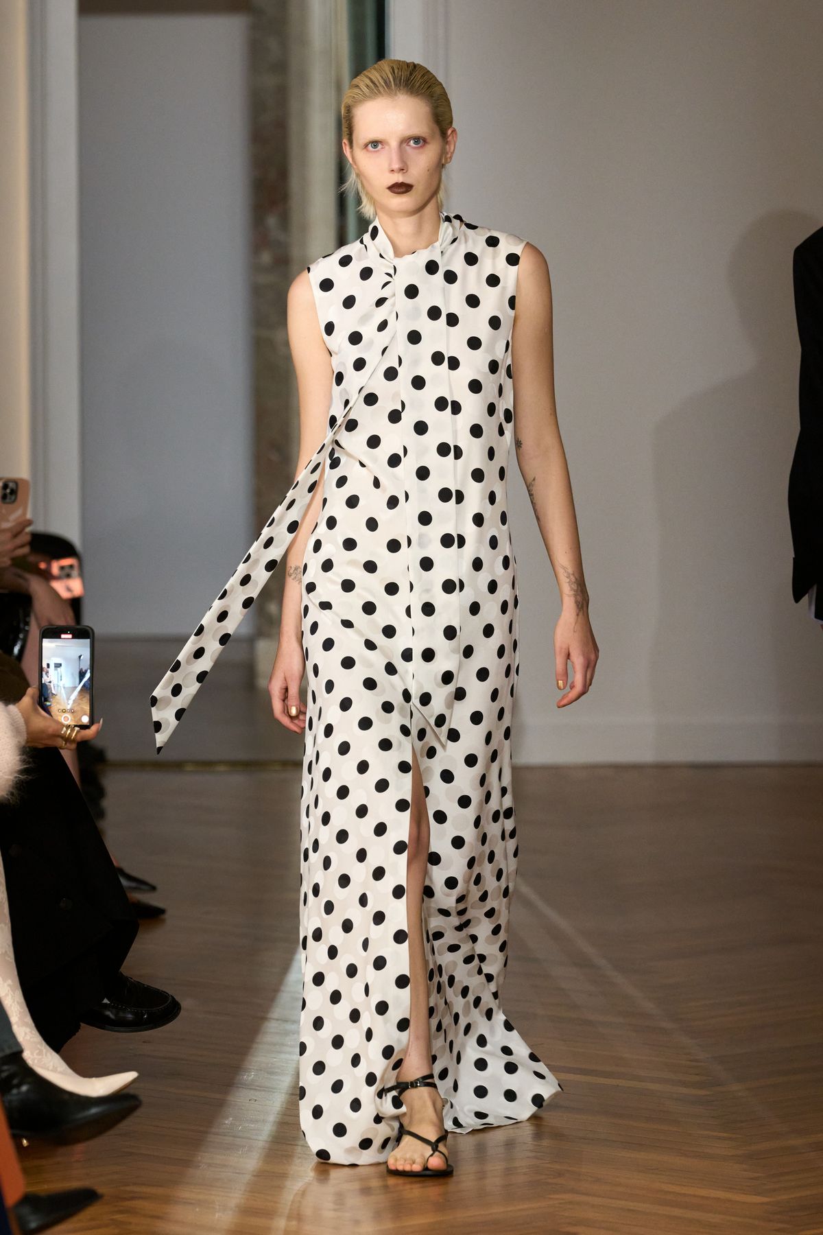 밀라노의 한 아파트를 무대로 열린 사 수 피의 첫 런웨이는 정제된 일상 속 숨겨진 아름다움을 발견하는 듯한 무대였어요. 브랜드는 디자이너 사라 페레로와 수잔나 쿠코가 공동으로 이끌고 있으며, 이름 ‘SA SU PHI’는 두 사람의 이름과 황금비율을 뜻하는 영단어 'PHI'을 조합해 탄생했죠.