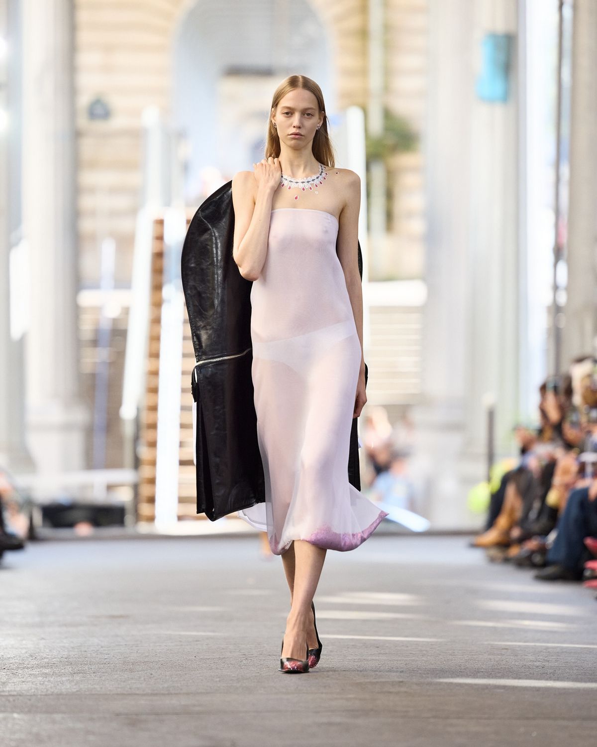 벨기에 앤트워프 출신 디자이너 줄리 케겔스는 이번 26 봄 여름 파리 패션위크에서 브랜드의 첫 공식 런웨이를 선보였어요. 앤트워프 왕립예술아카데미를 졸업한 그는 알라이아에서 경험을 쌓은 뒤, 2024년에 자신의 이름을 딴 브랜드를 론칭했죠. 이번 컬렉션의 타이틀은 ‘Quick Change’. 런웨이 중간에 스냅이나 후크를 풀면 실루엣이 즉시 변하는, 마치 마술 같은 테크닉을 선보였어요.
