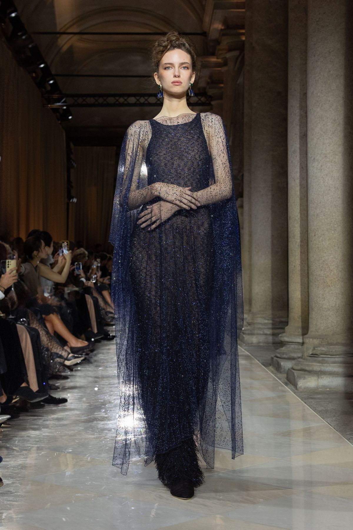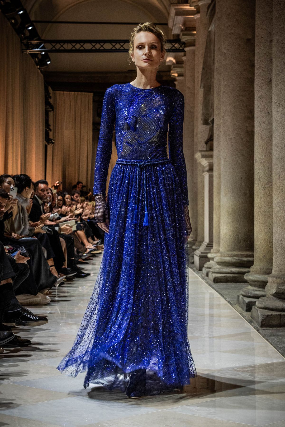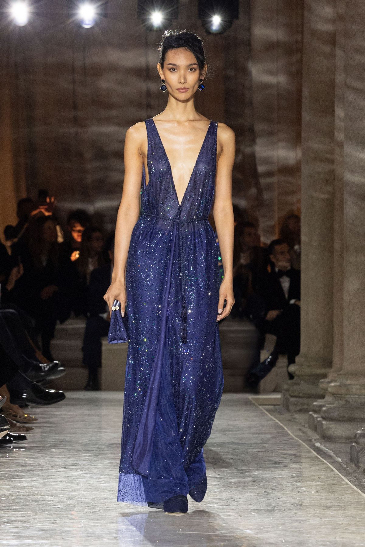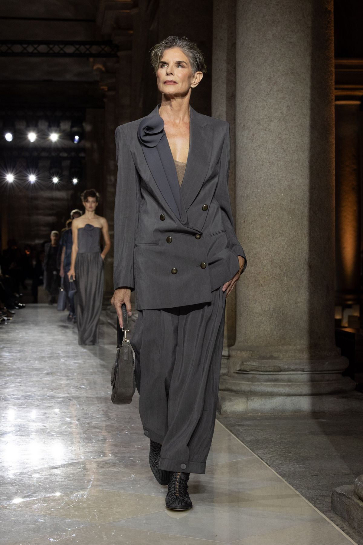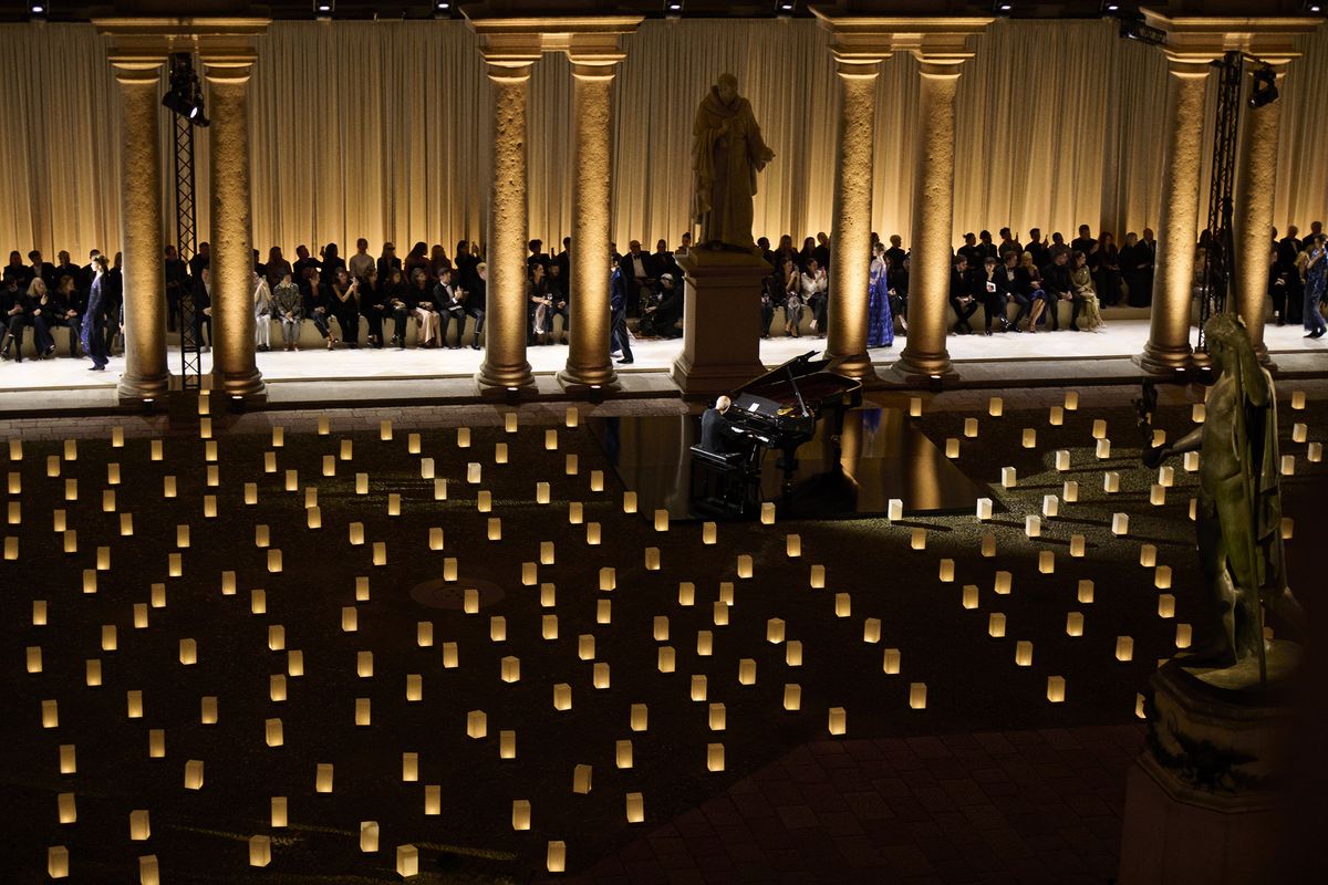 특히 브레라 미술관에 전시된 회화, 조각 작품의 색채와 질감이 조르지오 아르마니의 패브릭, 드레이프, 실루엣과 교차하며 예술과 패션의 대화를 조성했는데요. 테일러링의 재해석, 독창적인 장식 감각, 뉴트럴하지만 단조롭지 않은 색조 그리고 기법과 마감, 자수에서 드러나는 미학적 풍부함이 인상적입니다. 이러한 요소들은 조르지오 아르마니의 절제된 창의성이 드러나는 과정을 보여주며 ‘절제’라는 개념 자체를 새롭게 정의했죠.