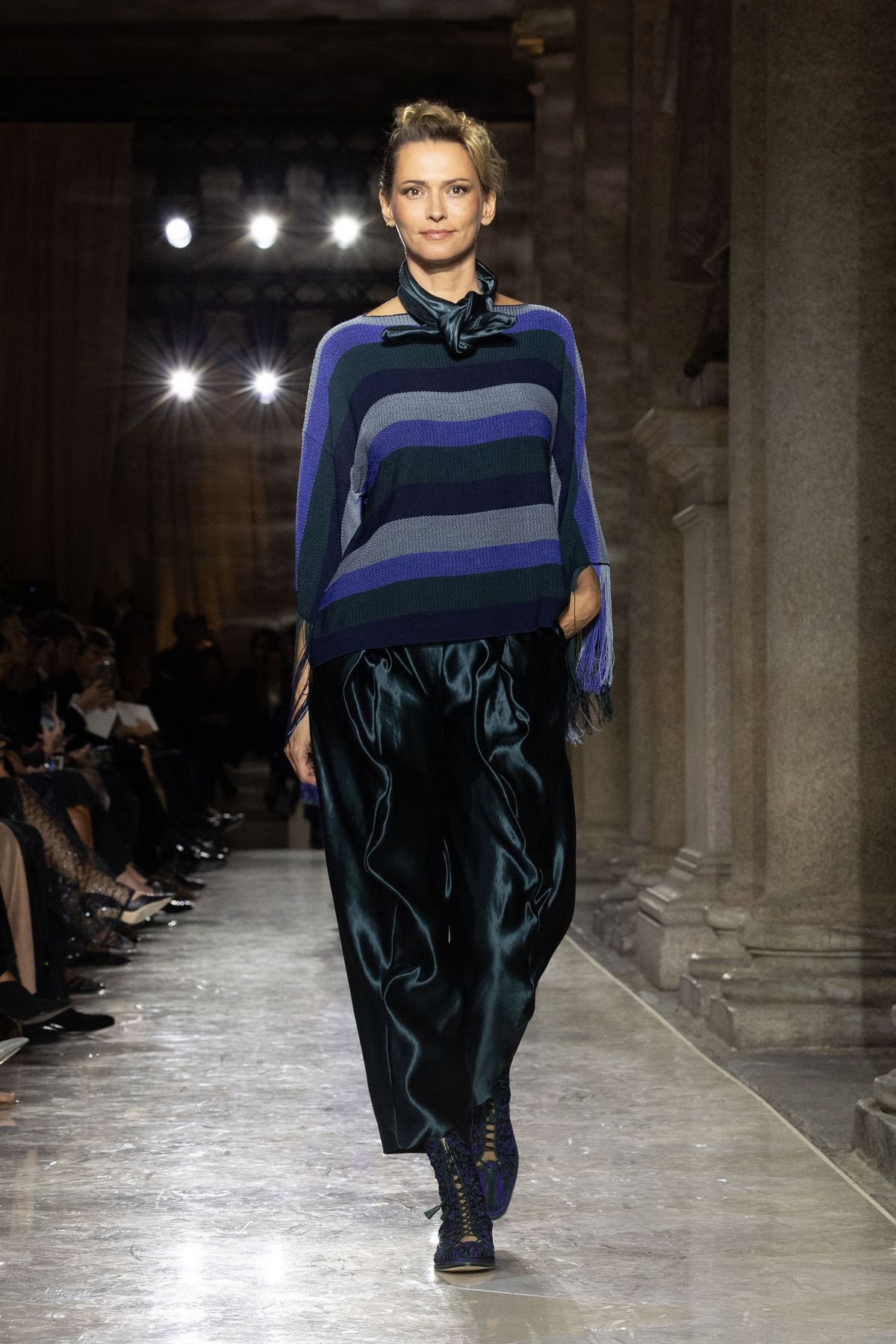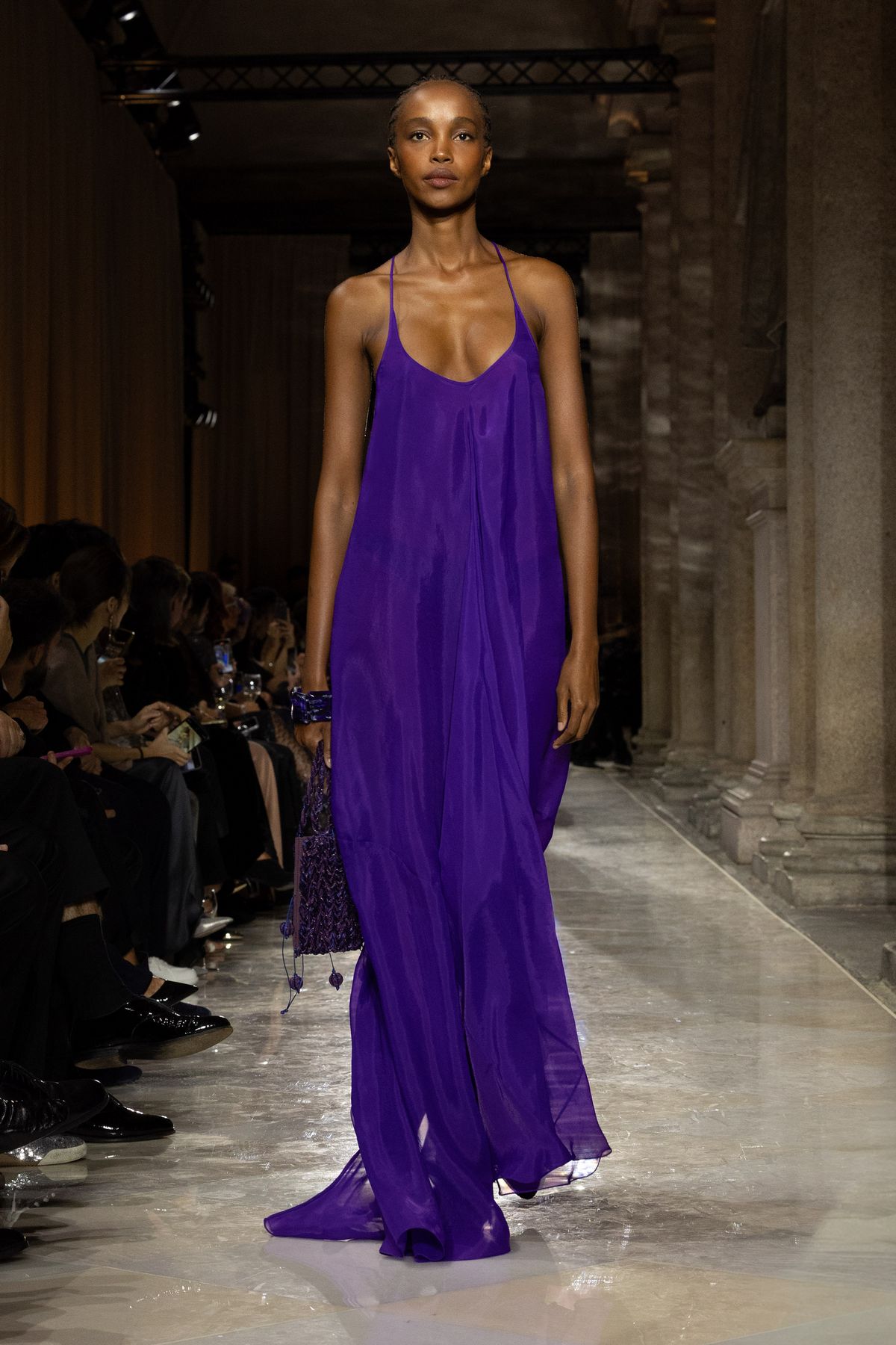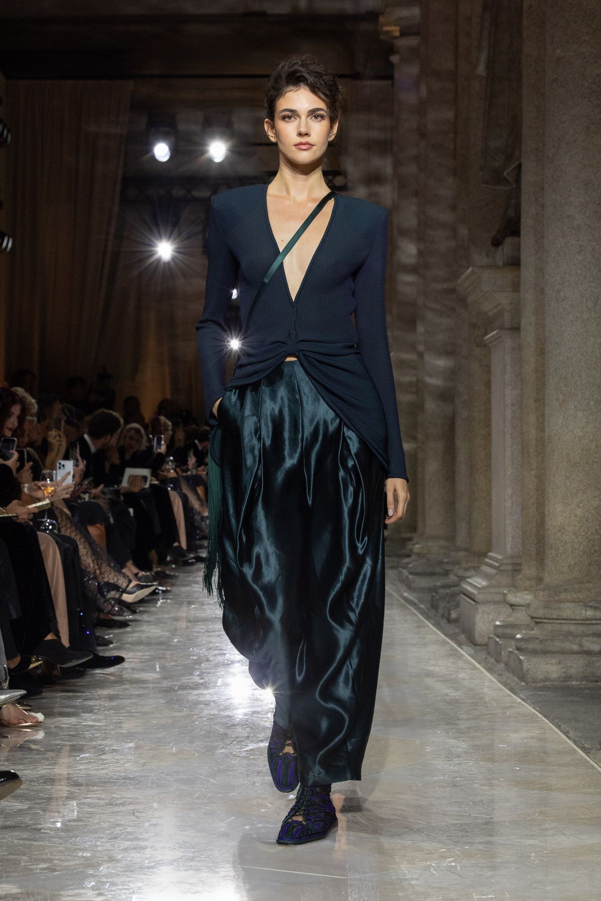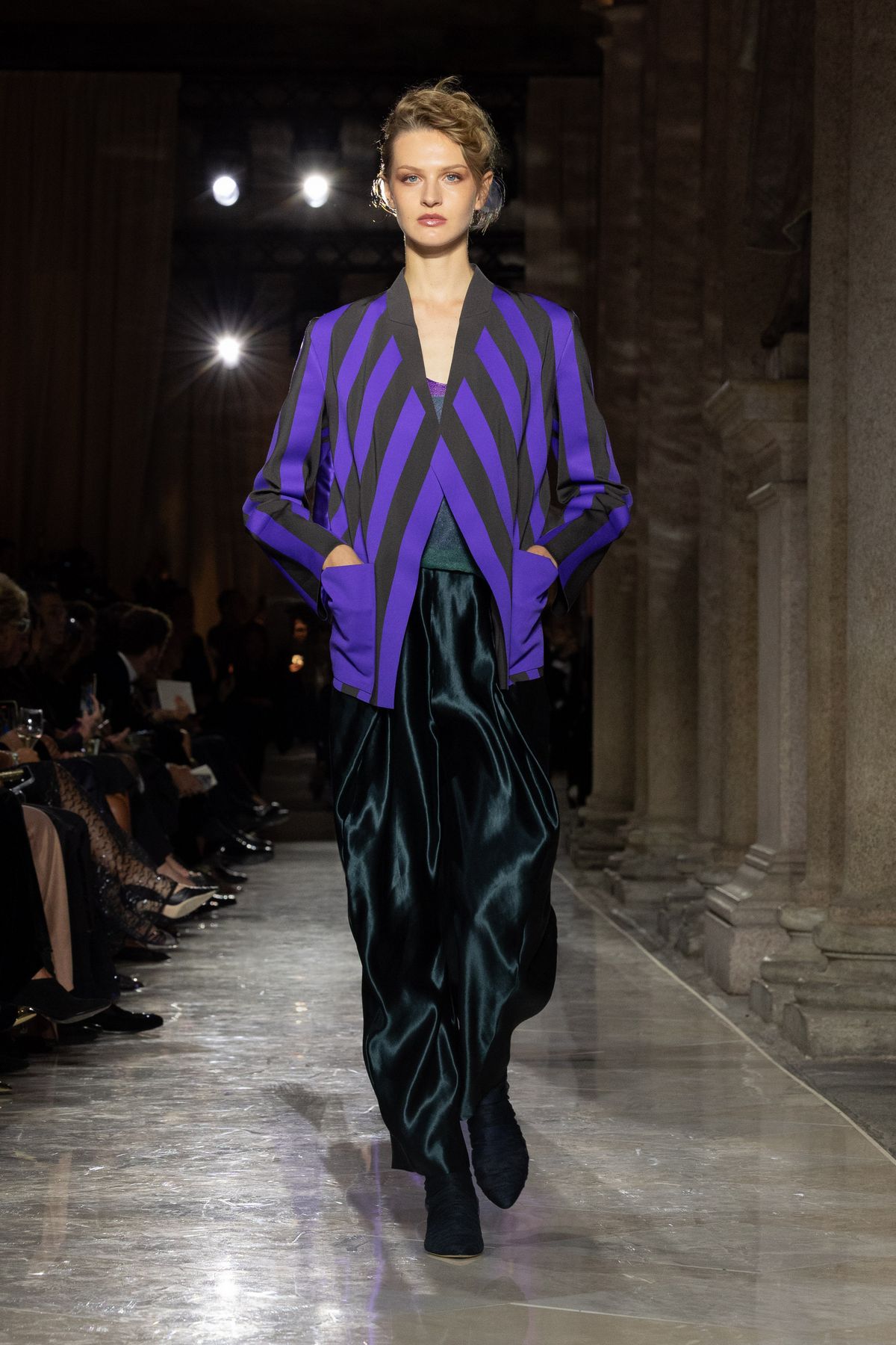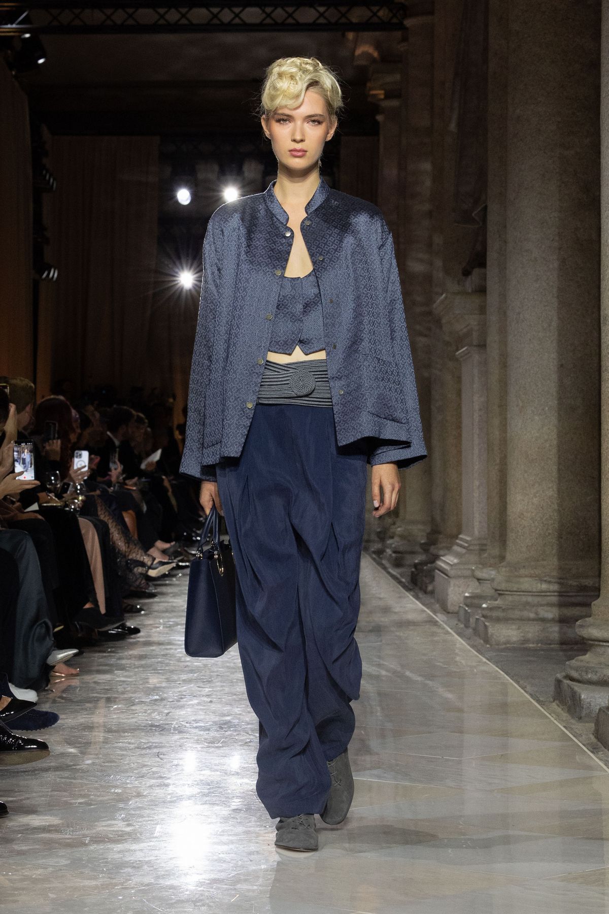 특히 브레라 미술관에 전시된 회화, 조각 작품의 색채와 질감이 조르지오 아르마니의 패브릭, 드레이프, 실루엣과 교차하며 예술과 패션의 대화를 조성했는데요. 테일러링의 재해석, 독창적인 장식 감각, 뉴트럴하지만 단조롭지 않은 색조 그리고 기법과 마감, 자수에서 드러나는 미학적 풍부함이 인상적입니다. 이러한 요소들은 조르지오 아르마니의 절제된 창의성이 드러나는 과정을 보여주며 ‘절제’라는 개념 자체를 새롭게 정의했죠.