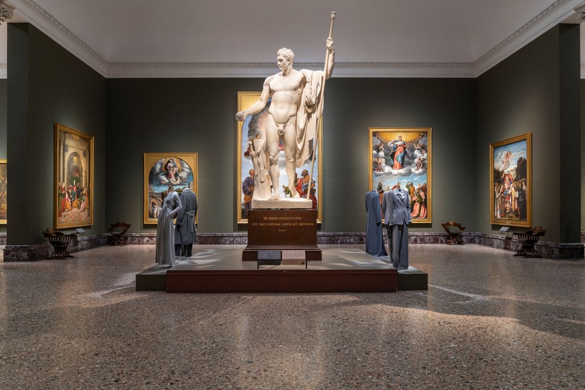 베니스 론칭 발표 이후 조르지오 아르마니 50주년 프로젝트는 밀라노 브레라 미술관으로 이어졌습니다. 지난 9월 11일 조르지오 아르마니 50주년을 기념한 대형 전시가 개최됐는데요. 이번 전시는 중세부터 이탈리아 미술사의 걸작들 사이에 조르지오 아르마니의 의상들을 배치해 그의 미학적 궤적을 새롭게 탐색했습니다.
