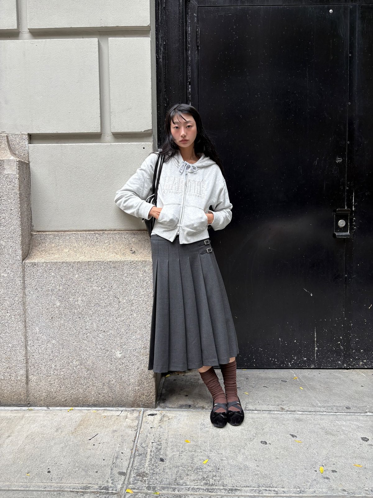 후드티에 치마를 더하면 전혀 다른 매력이 피어납니다. 편안함 속에 숨은 소녀다운 분위기와, 살짝 흔들리는 치마 자락의 발랄함이 어우러지죠. 무릎까지 오는 플리츠 치마에 니트 양말과 발레리나 슈즈를 매치하면 은은한 키치함이 살아납니다. 루즈한 후드티 실루엣과 함께라면, 귀엽고 여유로운 무드를 동시에 즐길 수 있습니다. 후드티는 이제 자유로운 캐주얼을 넘어, 다채로운 스타일을 완성하는 키 아이템입니다.