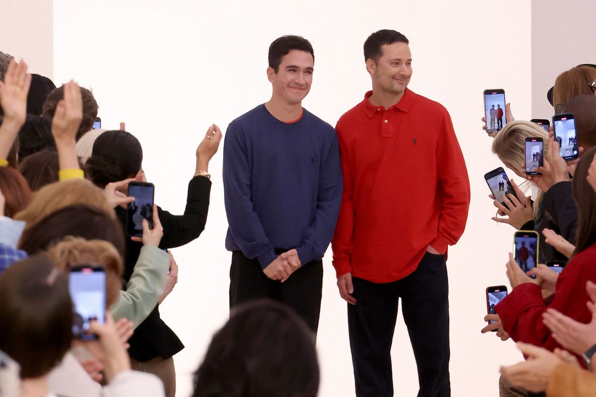 잭 맥콜로와 라자로 에르난데스 듀오는 로에베 피날레에 상큼한 컬러매치 스타일로 등장 했습니다. 블랙 슬랙스 차림으로 편안하면서도 쇼의 컨셉을 드러내는는 2가지 컬러 티셔츠를 입고 등장했죠. 이 노련한 듀오의 바이럴 마케팅은 시작된 듯 보입니다. 스마트폰으로 찍으며 환호하는 게스트를 보니 이미 전략은 성공처럼 보이지 않나요?