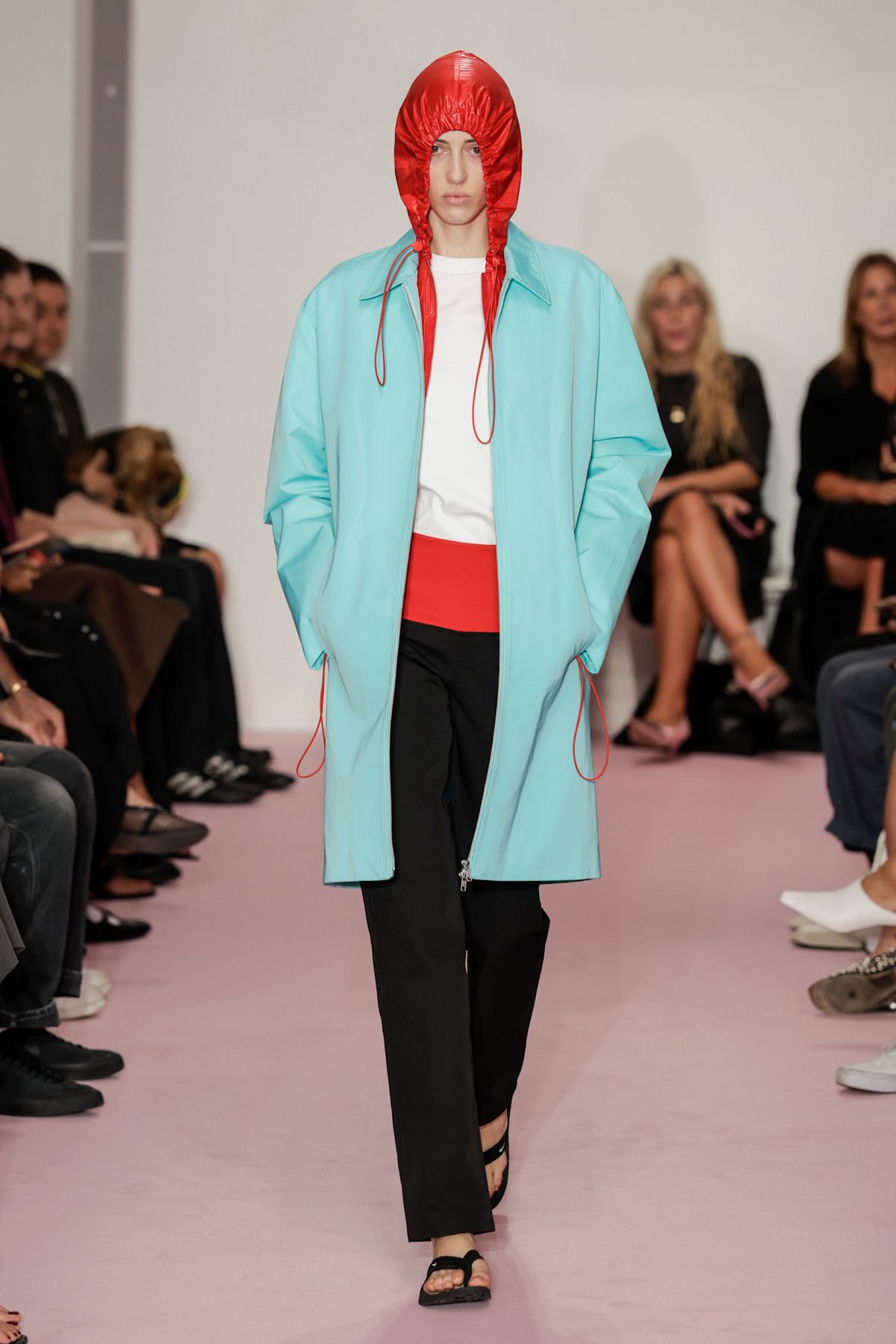 가죽 재킷과 코트에 더비 슈즈나 로퍼가 잘 어울린다고 생각했다면, 그 신발부터 제외해 보는 것이 첫 번째 팁입니다. 무거운 아우터와는 계절감이 다른 가벼운 플립플롭을 선택하면 완전히 새로운 분위기를 연출할 수 있습니다.