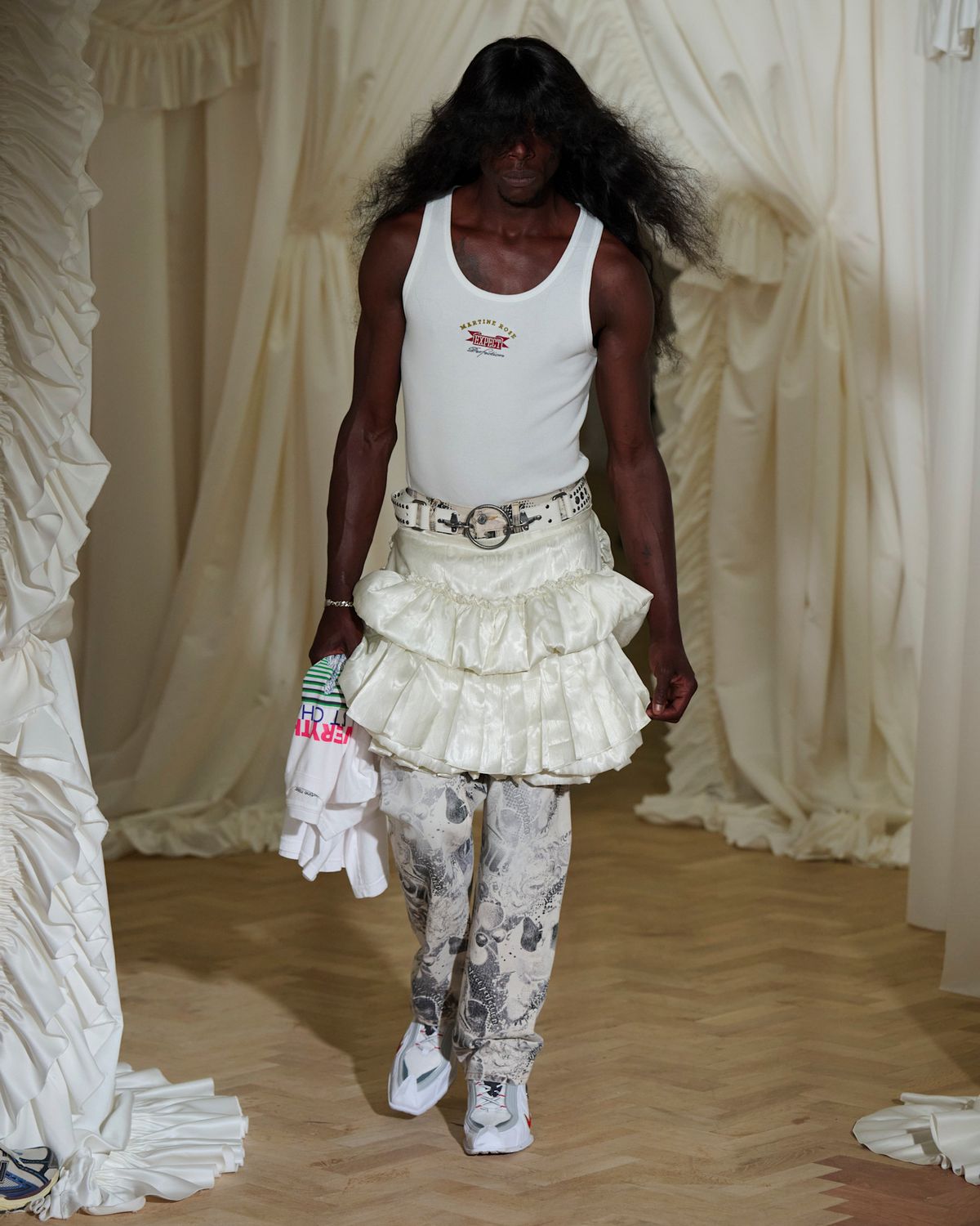 」로맨틱한 러플 스커트에는 스포티한 신발을 매치해 룩의 무드를 비트는 감각을 발휘해 보세요. 반대로 스포티한 저지 셋업에는 운동화 대신 정장에 어울리는 더비 슈즈를 신어 포멀한 분위기를 더하는 것도 좋습니다.