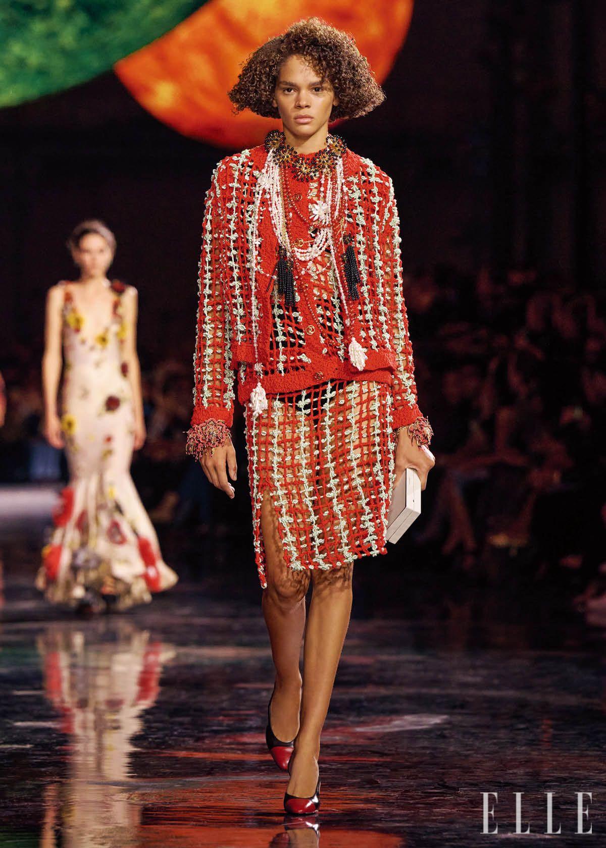 샤넬의 보편적인 언어는 전 세계는 물론 미래로 확장된다. 초반의 남성적인 룩은 블루종에서 영감을 받아 부드럽게 둥글린 형태로 재해석됐고, 실험적인 소재 연구를 통해 다양한 트위드 및 직조가 완성됐다. 과거에서 영감을 얻은 미래적인 아이디어는 샤넬의 기본 코드에서 출발한다. 트위드 격자는 손으로 짠 니트와 비침이 있는 소재로 변주되고, 수트의 구조미가 가감 없이 드러난다.