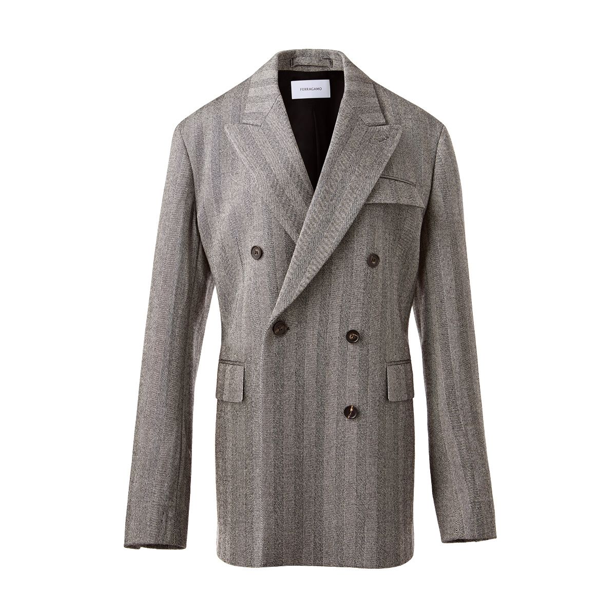더블 브레스티드 재킷은 가격 미정, Ferragamo.