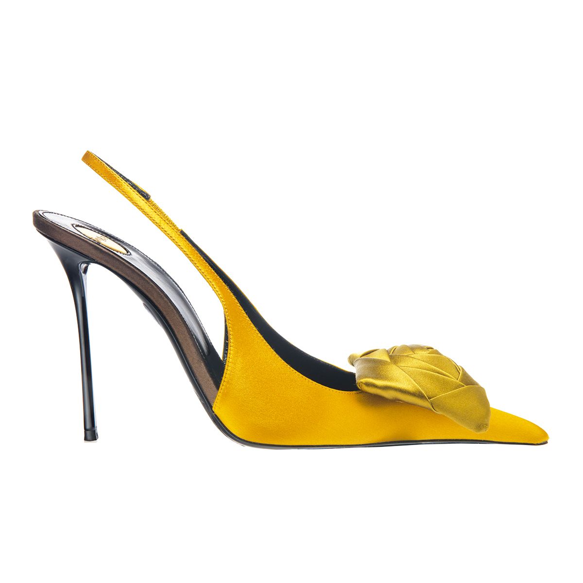 포인티드 토 새틴 펌프스는 가격 미정, Saint Laurent by Anthony Vaccarello.