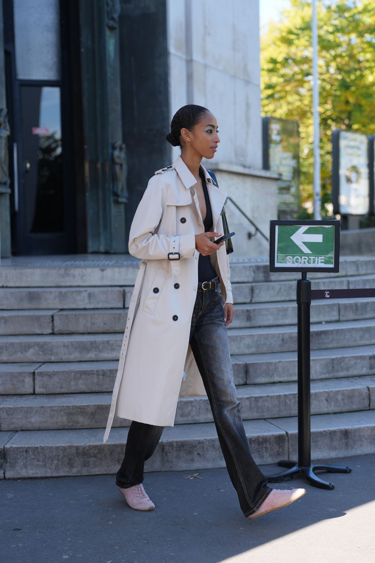 가을 하면 떠오르는 소재, 바로 스웨이드입니다. 이번 시즌 미우미우와 더 로우 컬렉션에서도 스웨이드 아이템이 대거 등장한 바 있죠. 따뜻한 소재감이 도드라지는 스웨이드를 크림색 시가렛 진과 매치해보세요. 두 소재의 텍스처 대비가 의외의 조화를 만들어내며, 가을 특유의 따뜻한 무드를 더해줄 테니까요. 특히 크림 톤의 데님은 화이트보다 부드럽고, 베이지보다 밝아 어떤 상의 컬러와도 잘 어울리죠. 크롭 기장의 트렌치코트에 스웨이드 백을 함께 매치하면 룩 전체가 부드럽고 감각적으로 정리됩니다. 지나치게 꾸미지 않았지만, 보는 이로 하여금 센스 있다는 인상을 주는 완벽한 가을 룩이죠.
