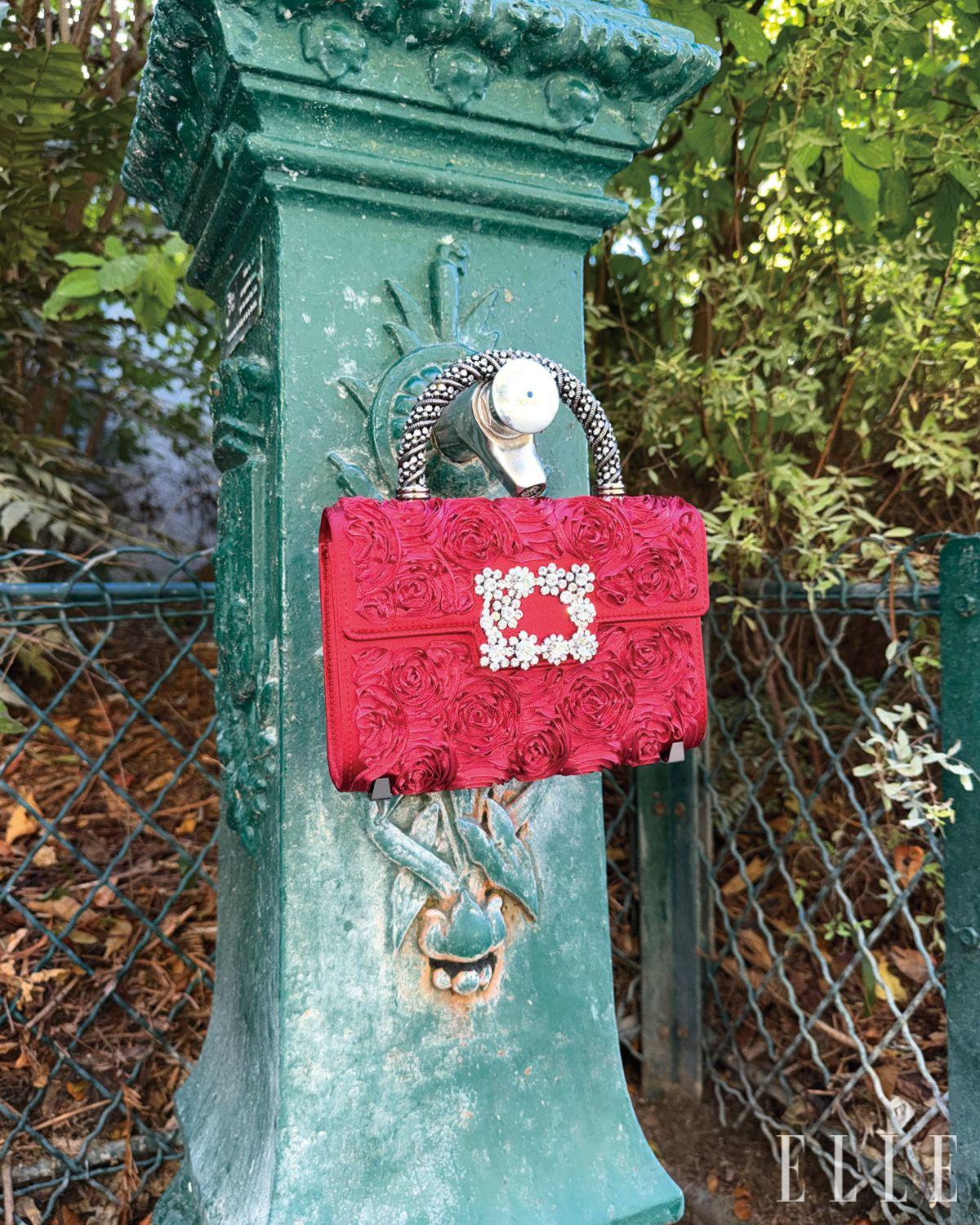 크리스털 버클 디테일의 로즈 미니 백은 가격 미정, Roger Vivier.