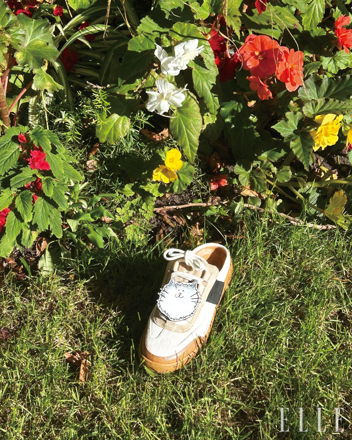 캐츠 모티프의 장식이 돋보이는 슬링백 스니커즈는 가격 미정, Louis Vuitton.