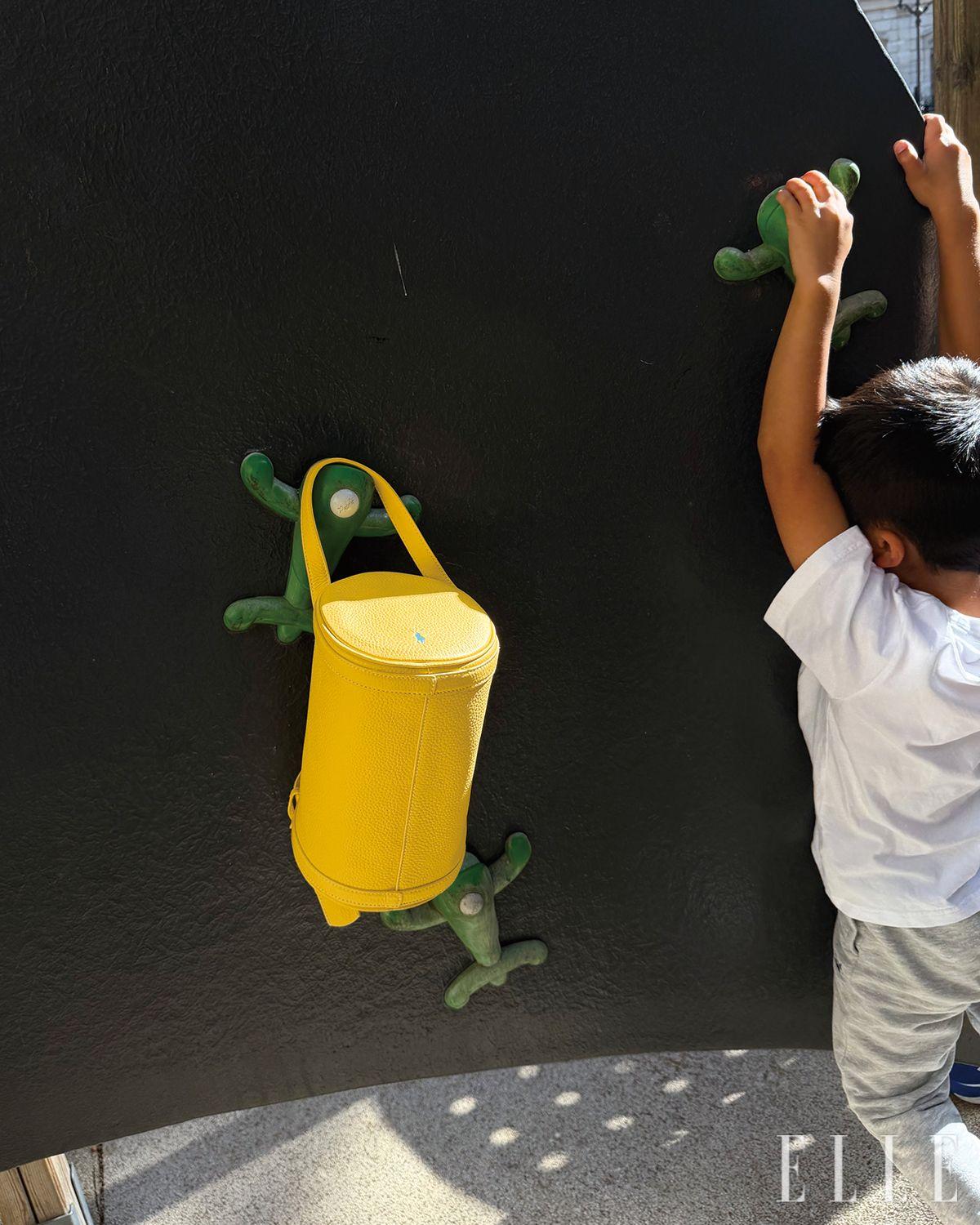 원통형 실루엣의 옐로 배럴 백은 가격 미정, Polo Ralph Lauren.