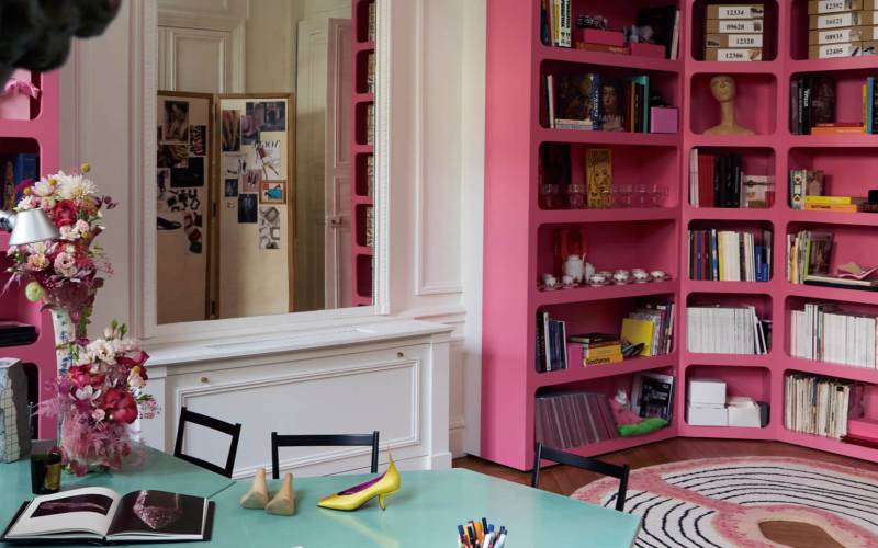 로즈 모티프의 플랫 슈즈는 가격 미정, Roger Vivier.
