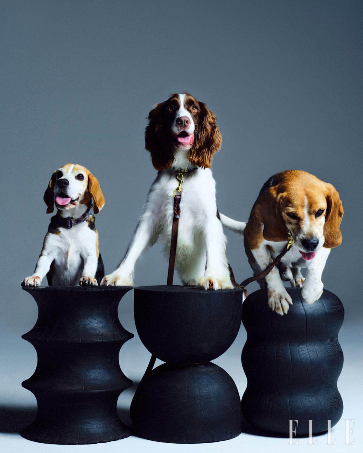 “세 친구 모두 활발해서 카메라 앞으로 마구 뛰어들더라고요(웃음). 이제야 우리는 막 친해지기 시작했는데 난초는 유독 제 말을 유심히 들어주는 것 같았어요. 제가 ‘앉아’라고 얘기하면 그대로 앉는 게 너무 신기했거든요. 그만큼 똘똘해요. 그래서 더 많이 친해진 것 같아요.” 수빈은 이들을 ‘브라보 친구’ ‘난초 친구’ ‘태일 친구’라고 꼬박꼬박 불렀다. 이름 끝에 꼭 ‘친구’라는 말을 붙이는 것처럼 수빈의 세심함과 다정함은 이날 이곳저곳에서 묻어났다. 특히 꽤 무거운 태일이를 안고 촬영할 때도 핸들러에게 “다리가 불편하지는 않을까요?” “어디를 받쳐야 좋을까요?” 하고 자세부터 힘의 강도까지 세심하게 묻는다. 익숙하지 않아 어색한데도 땀을 뻘뻘 흘리며 열심이다. “10kg 무게의 시바견을 안아본 적 있어요. 그때도 유튜브로 어떻게 안아야 하는지 검색해서 알고는 있는데, 오늘도 막상 해보니 쉽지는 않네요(웃음). 제가 힘든 건 문제 없지만, 친구들이 불편하면 너무 미안하잖아요. 스트레스받지 않게 최대한 상세하게 여쭤보고, 그 방법을 똑같이 따라 배우려고 노력했어요.”