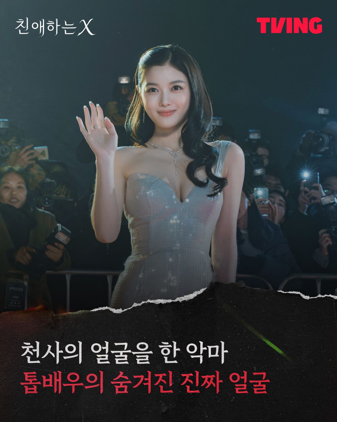 <친애하는 X>는 톱스타 백아진과 그에게 잔혹하게 짓밟힌 X들의 이야기를 그린 드라마입니다. 주연을 맡은 김유정은 이 작품으로 데뷔 이래 처음으로 악역에 도전했는데요. 그간의 밝고 순수한 이미지에서 벗어나 새로운 도전을 한 만큼 이번 작품은 그의 배우 인생에 새로운 전환점이 될 것으로 보입니다.