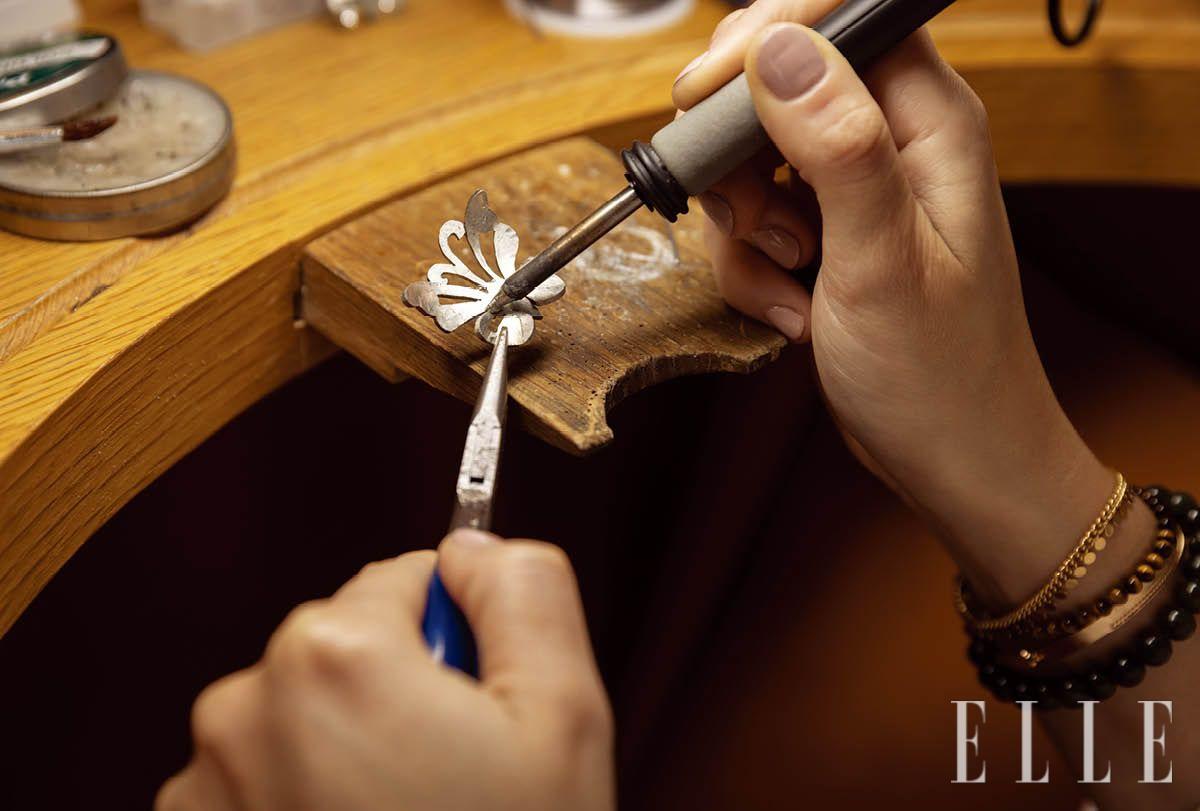 건너편 워크숍 룸에서는 다른 수업이 한창이었다. 수강생들이 뭔가를 자르고 접합하느라 분주했다. 공방의 한 장면 같았는데 목업(Mock-up) 클래스였다. 얇은 주석을 나비 모양으로 잘라내고 작은 펜치로 날개 곡선을 만든 뒤 라인스톤으로 장식하는 작업이 이뤄졌다. 요컨대 레꼴 주얼리 스쿨에서는 주얼리 밑그림을 그리고, 맞은편에서는 귀하고 가치 있는 소재를 직접 체험하는가 하면 동시에 3차원 모형을 만든다. 보석학을 머리가 아니라 체험으로 이해하는 방식. 레꼴 주얼리 스쿨이 강조하는 교육 철학의 전형이다.