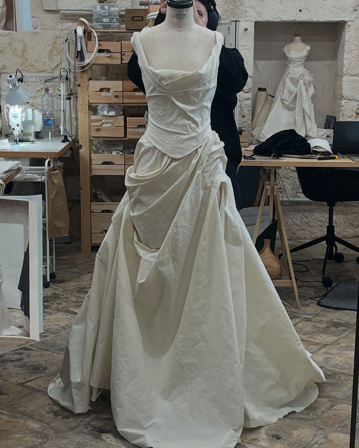 하우스의 디자이너 마리나는 런던에서 패션을 공부했고 이후 알렉산더 맥퀸, 셀프 포트레이트, 16알링턴에서 경험을 쌓았어요. 이후 팬데믹을 계기로 고향인 이탈리아 푸글리아로 돌아가 자신만의 아틀리에를 열고, 소규모 장인들과 함께 지속가능한 방식의 컬렉션을 제작하고 있습니다. 브랜드의 드레스는 대부분 리미티드 에디션 또는 주문제작 방식으로 만들어지고 있어요.
