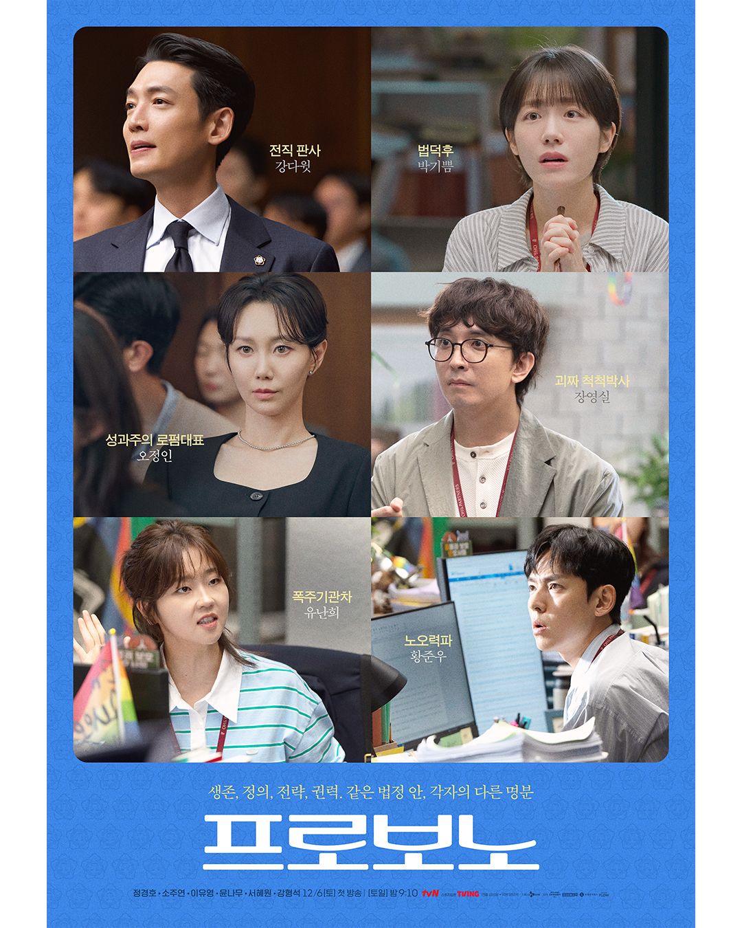 12월 6일 첫 방송을 앞둔 tvN <프로보노>는 현실의 이야기를 담은 휴먼 법정물이에요. 속물의 삶을 살던 인플루언서 판사 강다윗이 의도치 않게 공익변호사가 되면서 벌어지는 이야기를 그렸죠. 정경호는 하루아침에 처지가 바뀐 강다윗의 혼란스러운 내면을 유쾌하게 그려낼 예정입니다. 강다윗과 대비되는 인물, 박기쁨(소주연)은 인권 보호와 사회 정의 실현에 진심인 변호사입니다. 시민을 돕는 일을 힐링으로 여기는 태도를 지녔죠.