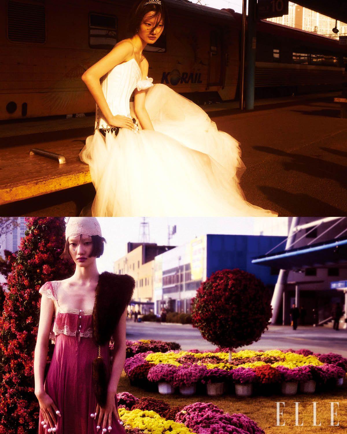 (위) 코르셋 드레스는 가격 미정, Wiederhoeft by Kayla Bennet. 플라워 모티프의 브로치는 가격 미정, Chanel. 왕관과 바이커 쇼츠는 모두 에디터 소장품 (아래) 레이스 장식의 드레스는 7백82만원, 퍼 숄은 가격 미정, 모두 Chloé. 니트 헤어밴드는 가격 미정, Valentino Garavani.