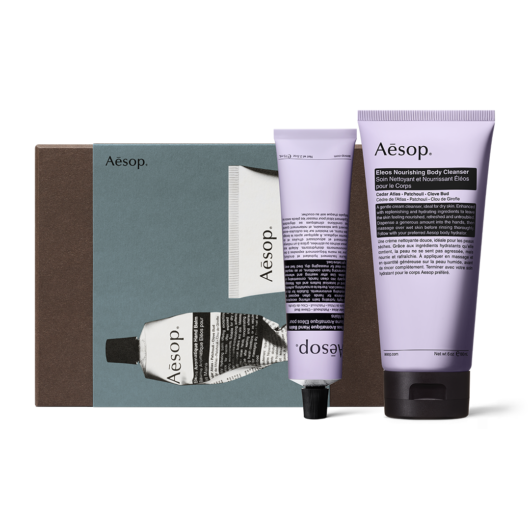 우디, 스파이시, 허브 향이 어우러진 바디 클렌저와 고보습 핸드 밤으로 구성한 샤워 룸 세레나데는 8만원대, Aesop.
