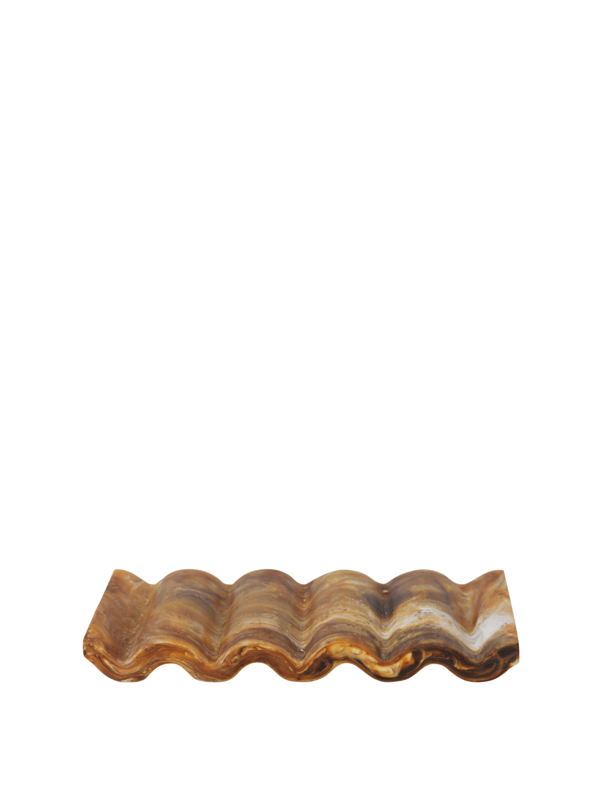 파도처럼 굽이진 형태의 레진으로 견고하면서도 은은한 우아함을 자랑하는 솝 디시는 2만원대, Ferm Living.