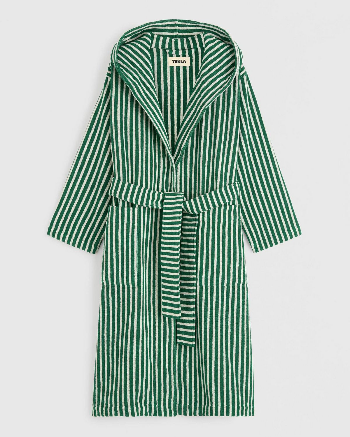 볼드한 스트라이프 패턴과 후드 디자인이 특징인 배스 로브는 40만원대, Tekla.