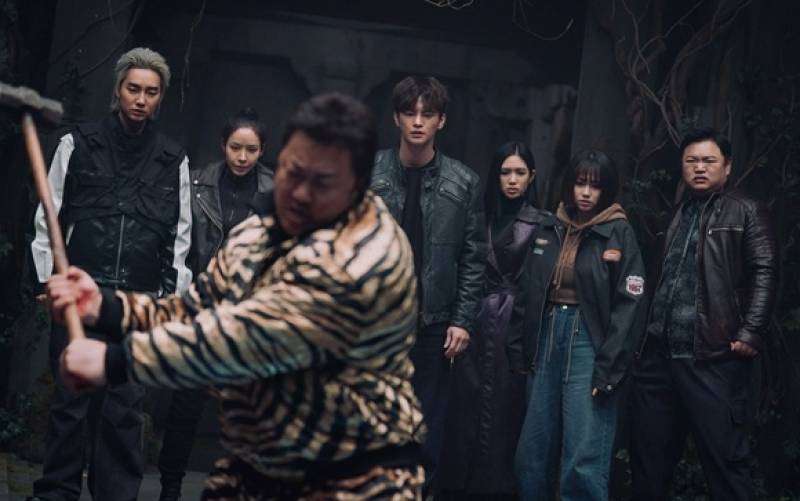 우선 알려진 것처럼 <타이고>는 크리스 헴스워스 주연의 액션 영화 시리즈 <익스트랙션>과 세계관을 공유합니다. 전쟁 지역의 디스토피아적 분위기가 그 안에서의 용병 제도 등이 반영될 것으로 보입니다. 전쟁으로 양친을 잃은 채 생존만을 생각하며 성장한 용병 타이고(마동석)는 가족처럼 여기던 리아(리사)가 아르만 최(이진욱)의 범죄 조직에 납치당하자 목숨을 걸고 구출에 나섭니다.
