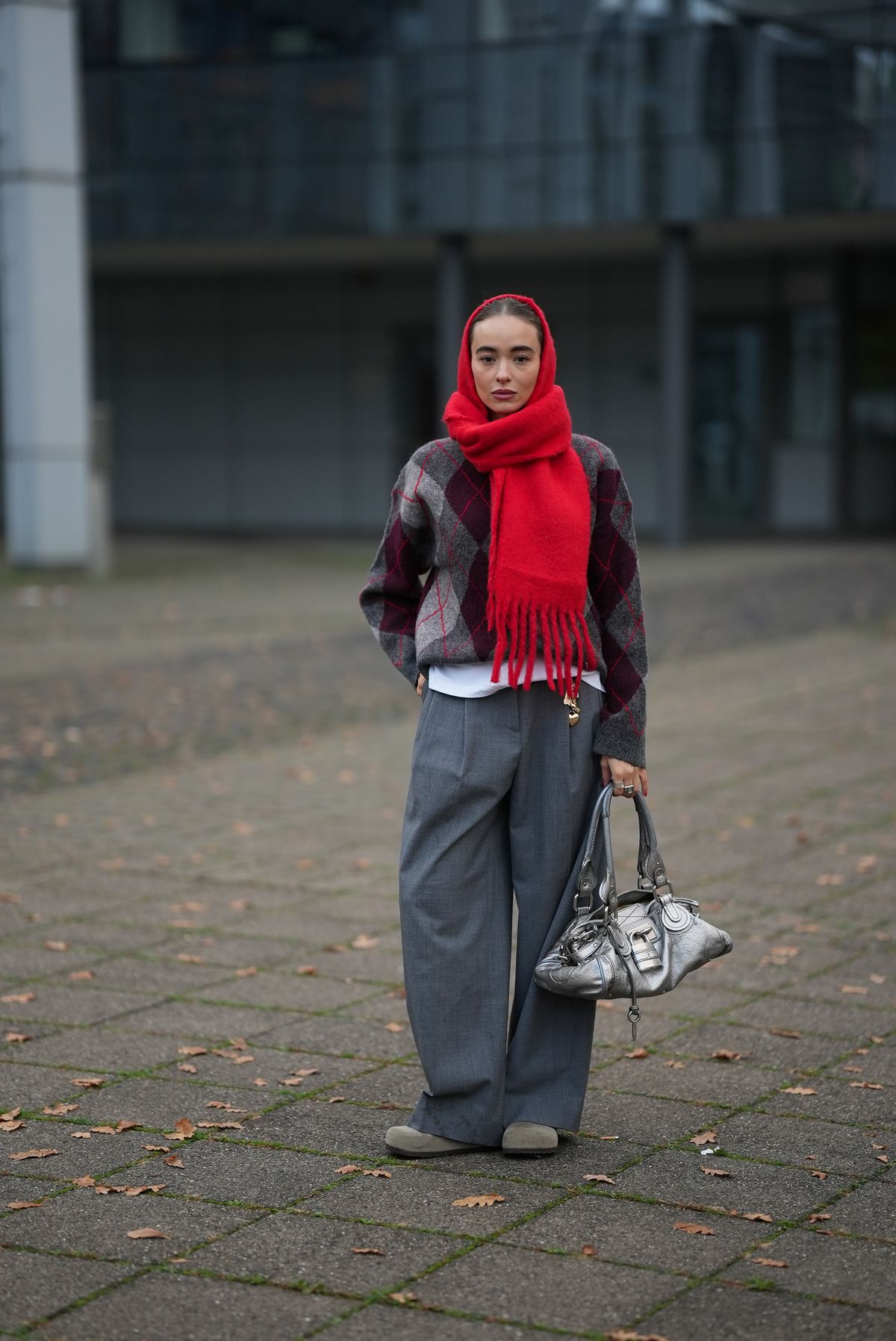 겨울철 룩의 분위기를 완전히 반전시키는 데에는 단 하나의 아이템이면 충분합니다. 그중에서도 머플러는 단순한 방한 아이템을 넘어 스타일의 주연으로 거듭나기에 제격이죠. 큼직하고 도톰한 두께감이나 강렬한 컬러감을 지닌 머플러일수록 존재감은 더욱 확실합니다. 여기에 아가일 니트와 단정한 화이트 티셔츠의 조합을 더하면 포근함과 클래식함이 자연스럽게 조화를 이루고, 톤다운된 플리츠 팬츠와 메탈릭 실버 바게트 백까지 더하면 룩에 도시적인 활기가 감돌죠. 마지막에는 클래식한 버켄스탁 보스턴을 더해 균형을 맞춰주면, 화려함 속에서도 조용히 빛나는 무드가 완성됩니다.