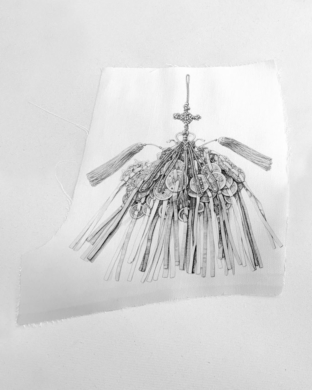 한 폭의 그림을 연상케 하는 드레스는 모두 르쥬의 작품입니다. 앞서제니의 'ZEN' 뮤직비디오 속 커스텀 의상으로 한국의 미를 널리 알린 브랜드죠. 주목할 점은 이 모든 의상이 철저한 수작업과 장인정신에 기반해 완성됐다는 사실입니다. 약 200시간에 걸쳐 금박장으로 새긴 2,000여 개의 ‘제니’라는 이름과 얇은 사의 결을 살리기 위한 수작업은 동시대의 가장 뜨거운 아이콘, 제니를 만나 마침내 또렷한 의미를 얻었습니다. 이보다 극적인 전통과 K-팝의 만남이 또 있을까요?