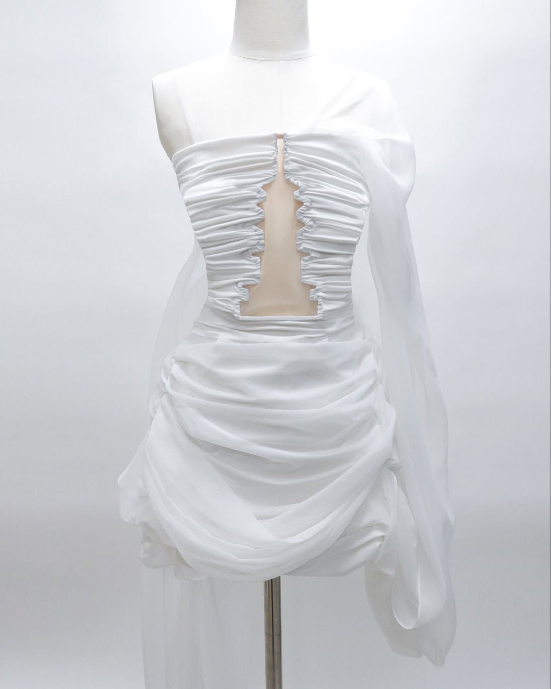 ‘올해의 레코드’를 수상하며 등장한 순간, 제니는 또 한 번의 클라이맥스를 선보였습니다. 핸드 드레이핑으로 섬세하게 완성한 드레스의 컷아웃 디테일을 자세히 들여다보면 익숙한 실루엣이 떠오르죠. 바로 불국사 석가탑입니다. 수직으로 떨어지는 구조와 군더더기 없는 실루엣 안에 정제된 긴장감이 흐르죠. 화려함보다 비례와 균형을 중시해온 한국 미학의 정수를 현대적인 언어로 번역한 결과입니다. 조지훈의 시 「승무」 속 “얇은 사, 하이얀 고깔은 고이 접어 나빌레라”라는 구절처럼 한국의 정교한 미감이 그대로 구현됐죠.