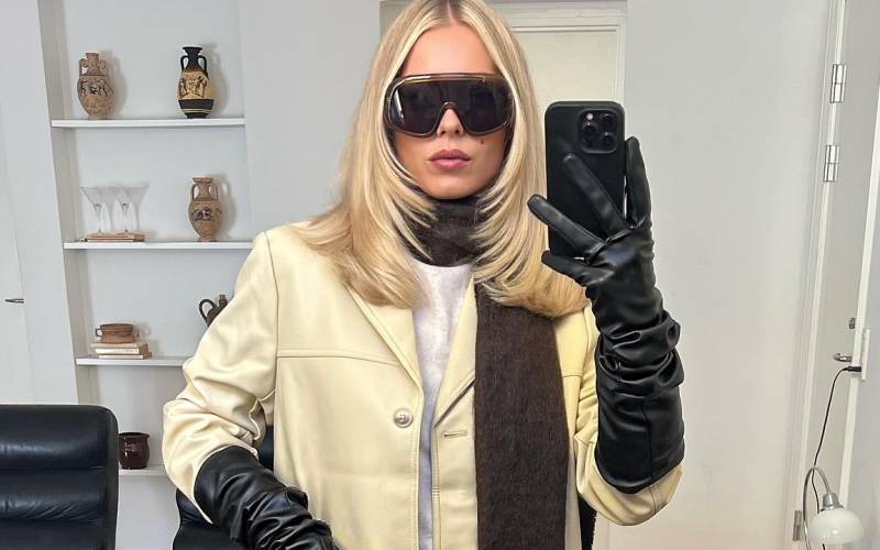 터프한 인상의 가죽 재킷을 섬세한 레이스 아이템과 매치했을 때 오는 특유의 매력이 있답니다. 특히 룩에 로맨틱한 요소를 가미하고 싶을 때 참고하면 좋을 스타일이죠. 엘사 호스크는 오버사이즈 가죽 재킷과 드라마틱한 사이 하이 부츠를 매치한 후, 레이스 슬립을 재킷 아래로 살짝 드러나게 연출해 우아한 디테일이 더 돋보이는 스타일을 완성했습니다.